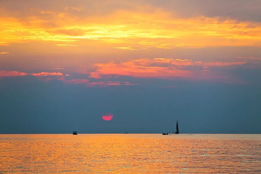 最后,给大家送上前天傍晚,在威海出海打鱼时,顺手拍下的海上日落: