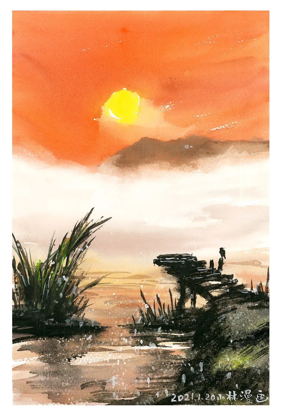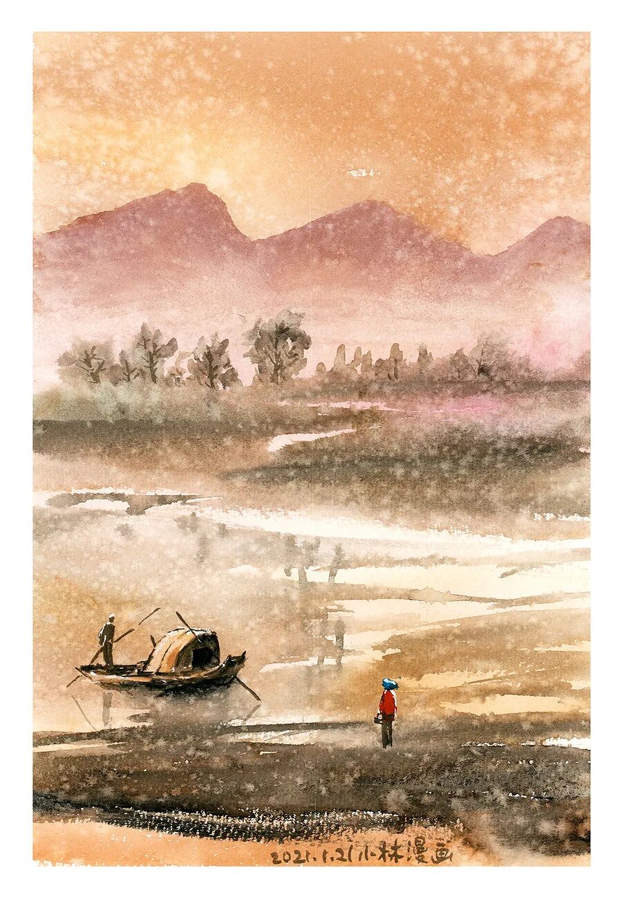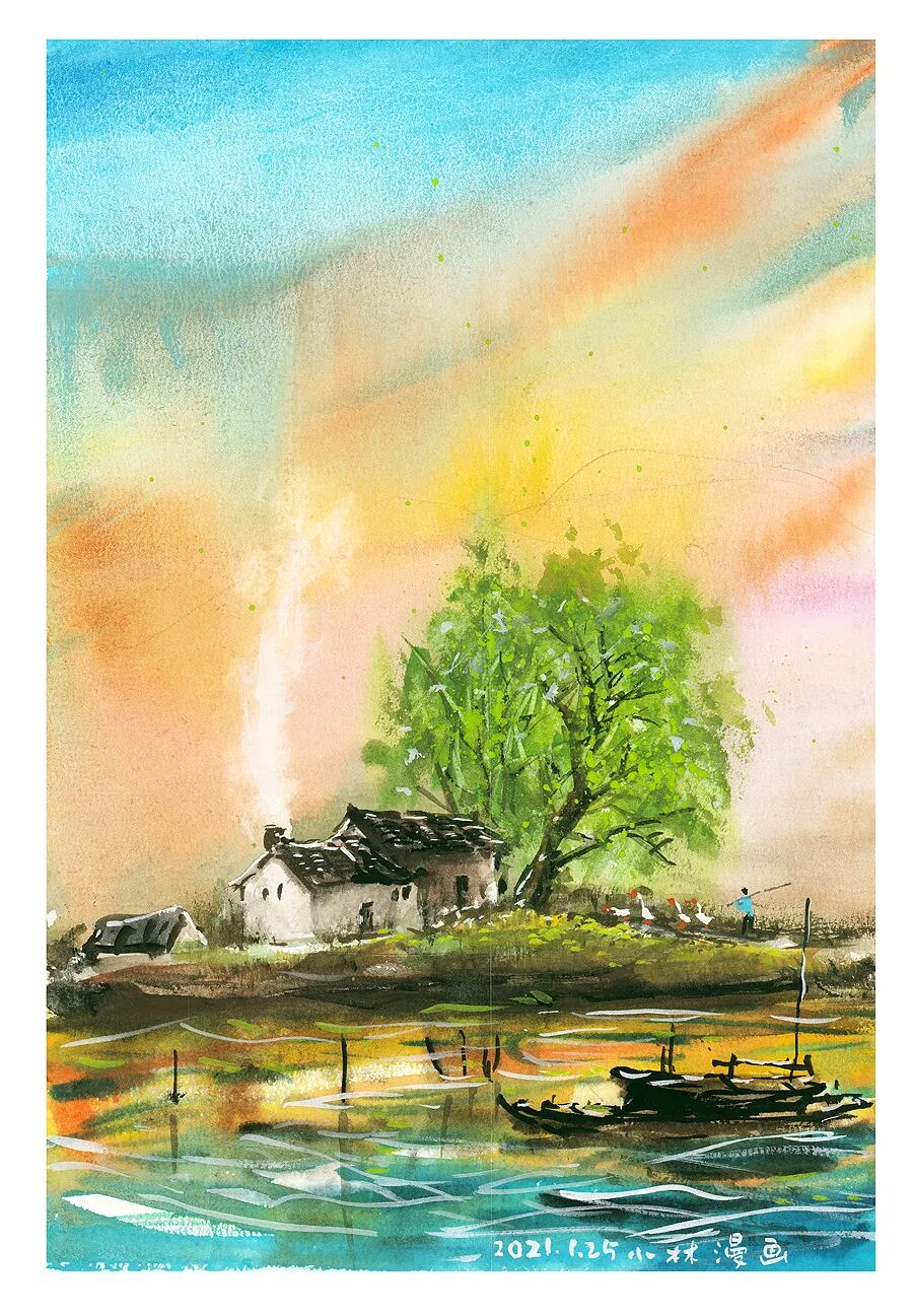 水墨漫画已经被丰子恺先生开创掉了,我得开创别的,水彩漫画似乎可以考虑呢……