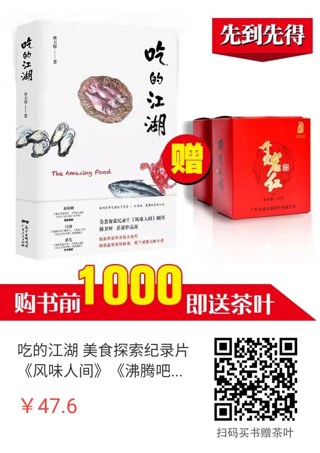买四十多块钱的一本书,送一百块钱的茶叶,这是什么逻辑,不知道也不敢问,反正肯定不是诈骗,大家对美食感兴趣就买一本吧,下面长按这个二维码可以下单: