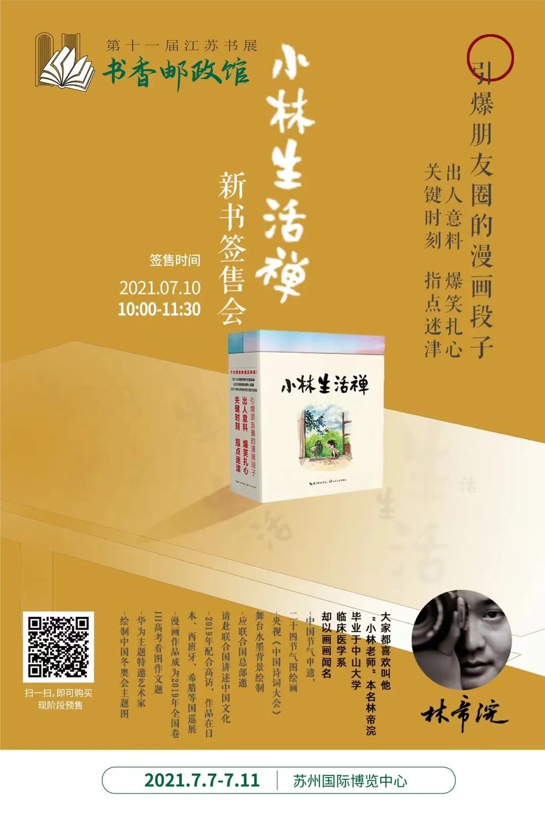 此时,小林已经到了苏州,参加明天的江苏书展,《小林生活禅》的新书首发,现场赶制出了少量现成新书,小林也会在现场为大家签名。