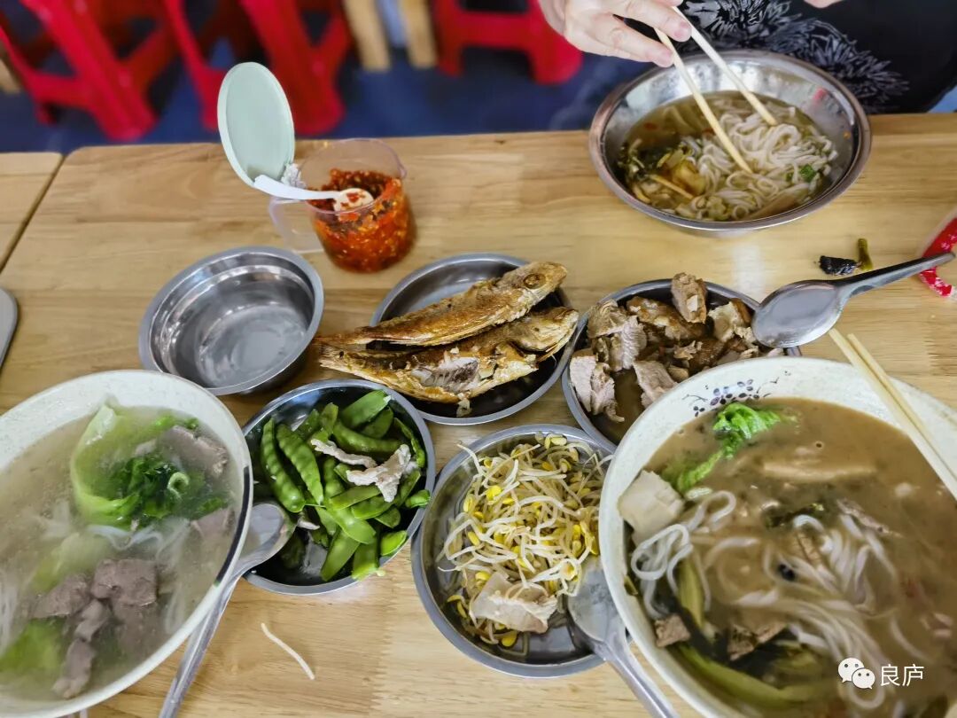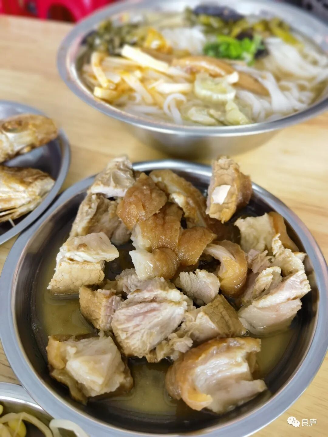 好在小区里边还算闹中取静。我们中午到达,很快联系到管家,顺利进入事先联系好的出租房,东西搬到楼上,人已经饥肠辘辘,在门卫保安的指点下,开车到附近村口吃饭。小店很小,有快餐和各种粉,老早就知道广西“嗦粉”天下第一,三个人各要一份粉来“嗦一嗦”喽!他家也只有三种粉,钦州猪脚粉,南宁老友粉,还有一份不知道哪里的猪杂粉。真的不是我不厚道,这个粉真的不好吃,不知道是这家的做法不对,还是我们吃不来这些粉,从口感到味道都完全不能接受!又叫了两个小菜弥补下,煎鱼还行,5元一条,个头够大,味道也不错。东西倒是很便宜,一份带完整大猪脚的粉才13元!三个人三份粉外加几个小菜总共53元!