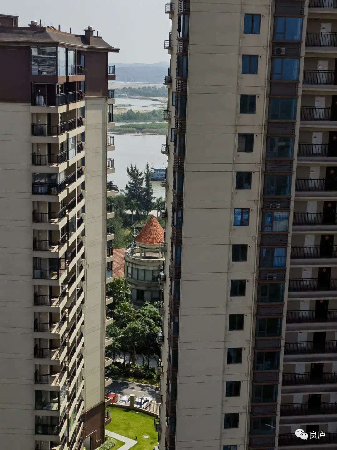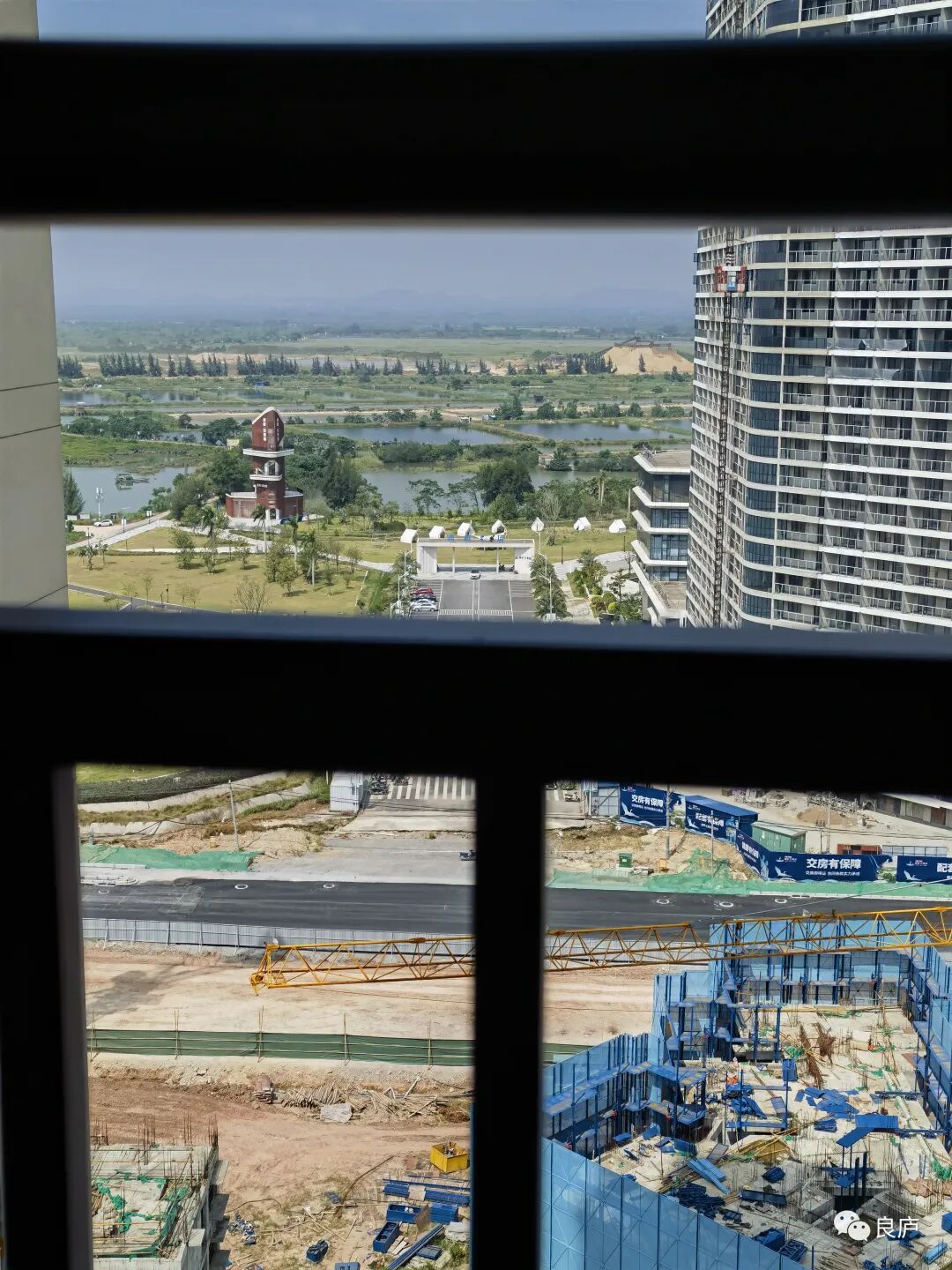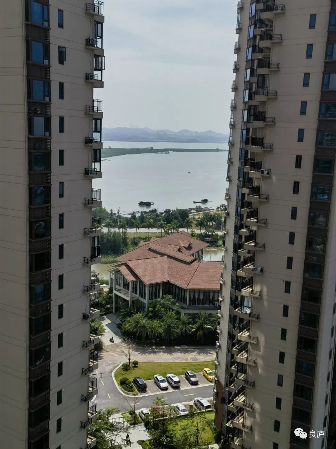 从租住的18楼窗口拍出去,可以在楼空间看到茅尾海,前边红顶是碧桂园自建酒店