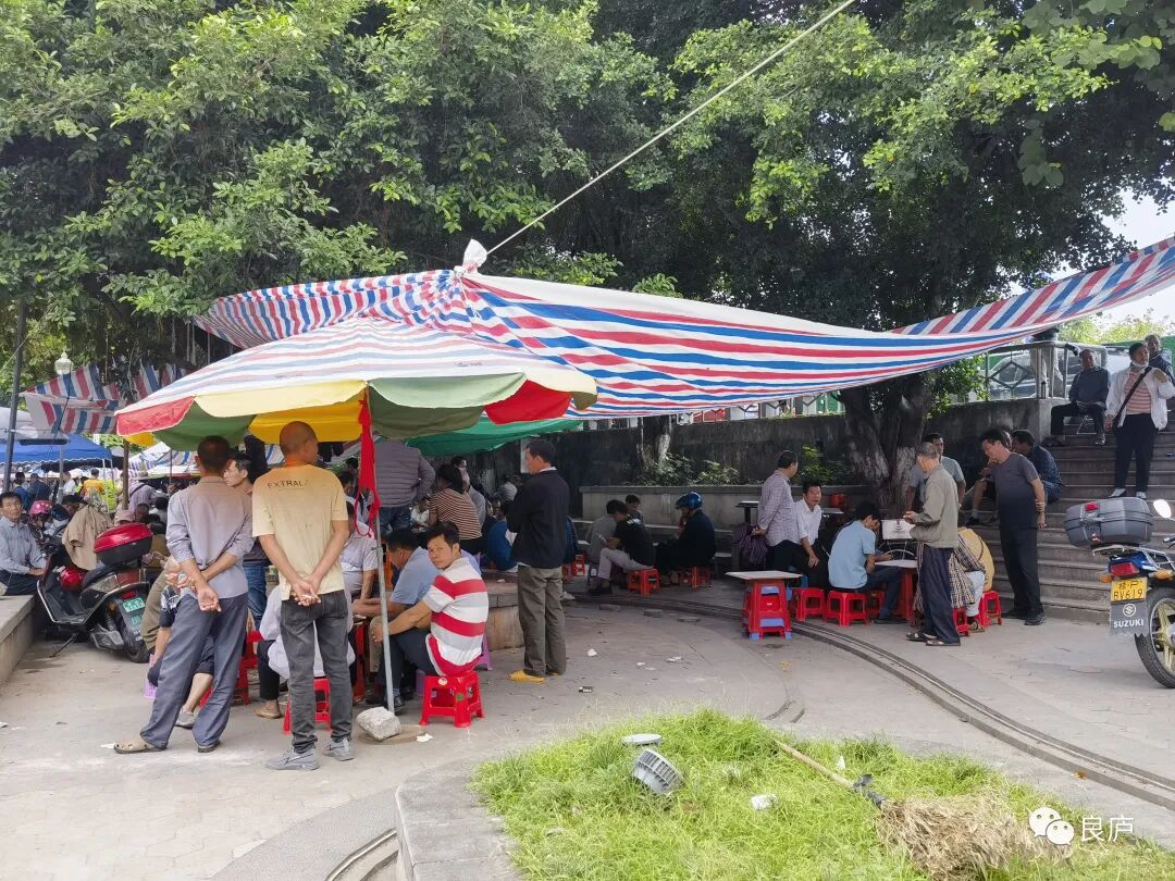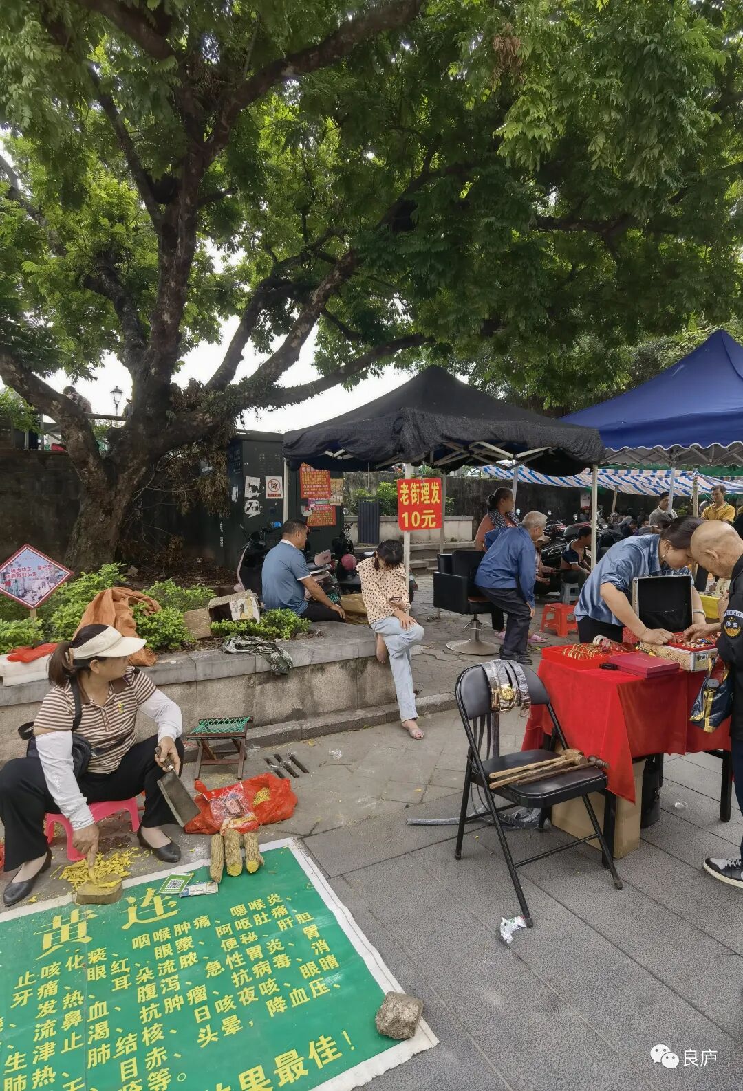 我把钦州老街分为三段,一,钦江边段,真是原汁原味的钦州本色,江边大树下,凉亭凉棚里,到处是人——坐在小板凳上打牌,聊天,卖呆,摆摊卖古董、服装、小吃的,还有认真化了妆唱戏的,这么多人聚集一起,不知道的还以为这里有集会!不知道是周末的原因还是平时就这样,感觉这里的人们过的都很悠闲,感受不到一点儿“卷”的气息,让我想起当初来买房时销售说的话,他说我们这里人都很平和,日子过的很安逸……这氛围我喜欢!