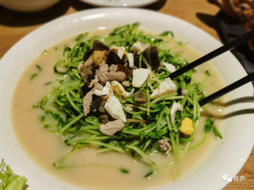 上汤豆苗,里边加咸蛋松花蛋和瘦肉,汤鲜味美!👍👍
