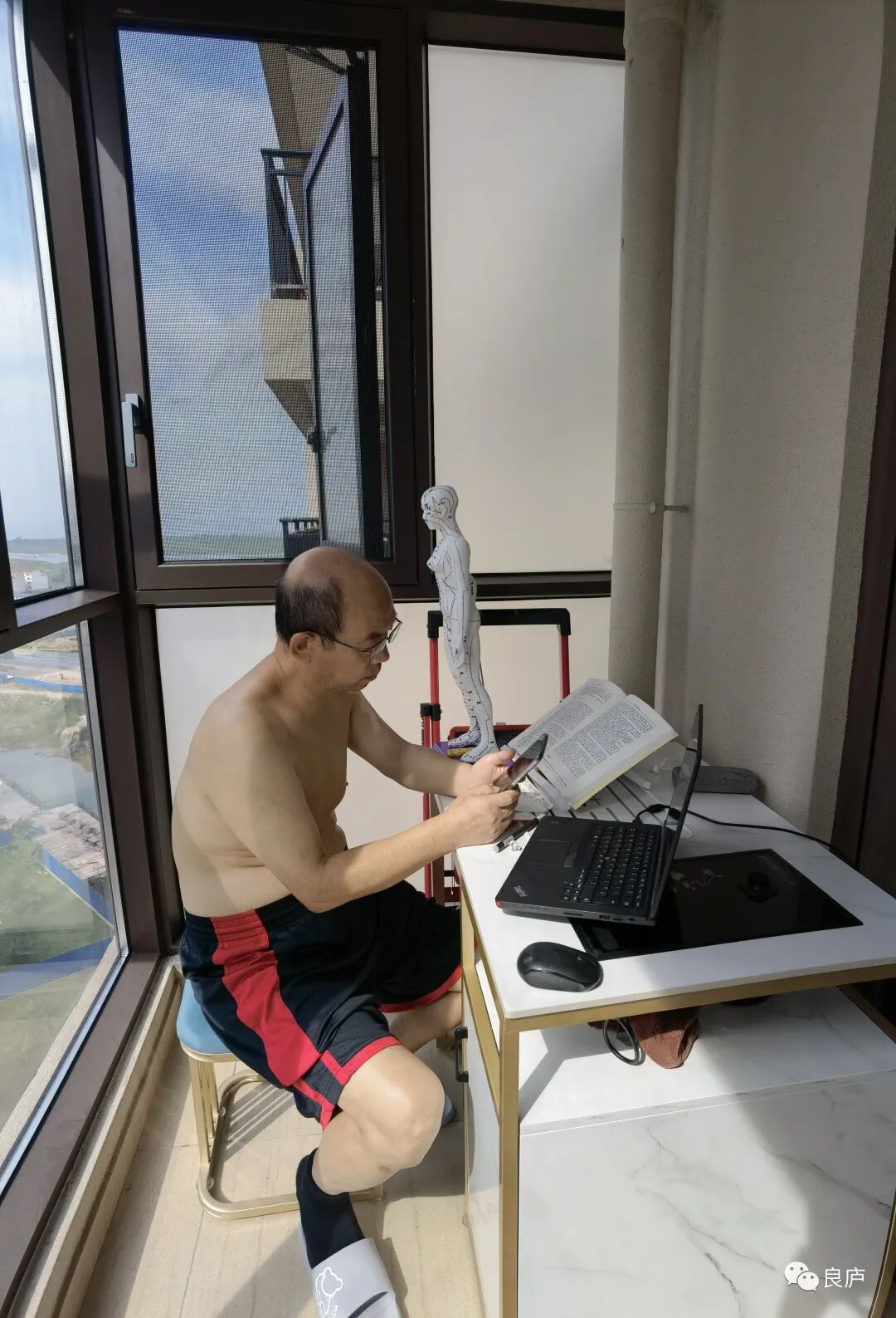 二木同学在阳台茶桌一角开辟了自己的领地,装作学习的样子,其实呢,就是躲避劳动,自己那里偷着乐呢!