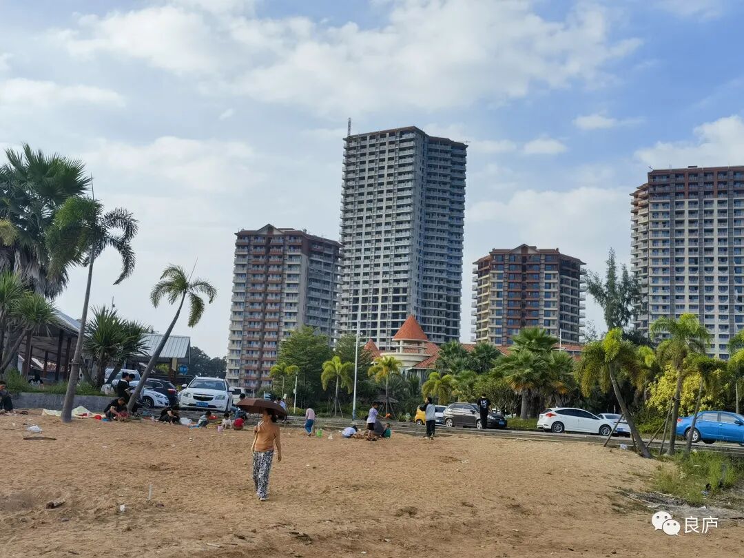 在小区售楼处前边是茅尾海,原来还有一个“蚝情广场”,只不过随着平陆运河的开挖,养蚝的竹排都撤了,养蚝基地应该也换地方了吧,前边沙滩零星有些本地游人,沙滩上显得有些狼藉之相,垃圾有点多,曾经的商业也都落寞退场,眼下一片破败景象……只能畅想平陆运河开通后的壮丽景观了!可是,他们两个不肯配合我阿Q一下,非和眼下的一切不美好过不去,唉,他们怎么就那么傻,精神胜利法都不会用!🤭🤭