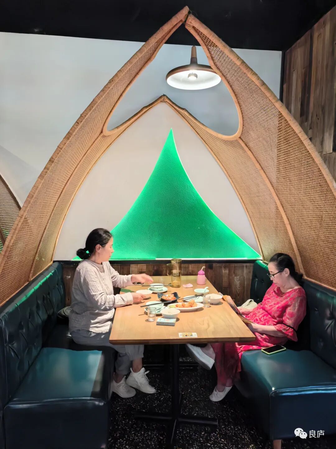 里边绿植和竹编器具很多,店面装修风格确实有点与众不同!