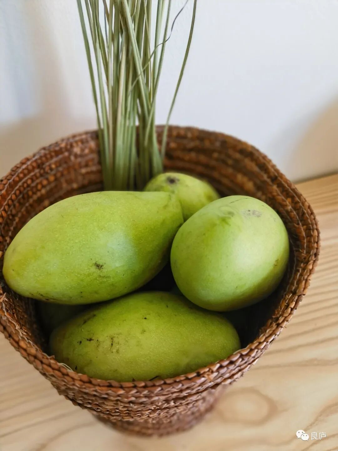 十块钱买了这一筐,八个大青芒,不过还有点生,需要再放一放!