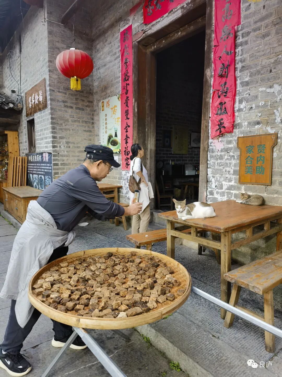 古镇里的猫也过得好安逸,根本不怕人,靠近它拍照它也纹丝不动!👍👍那大笸箩里装的就是郭家有名的豆豉的原料吧。