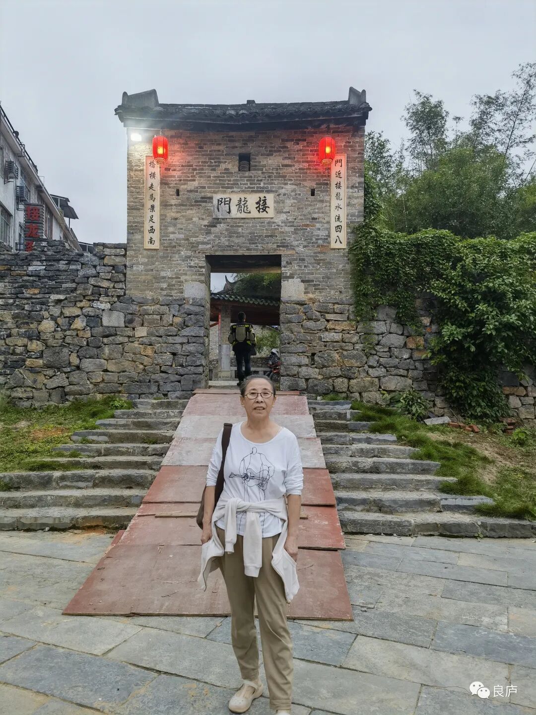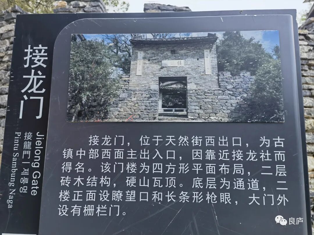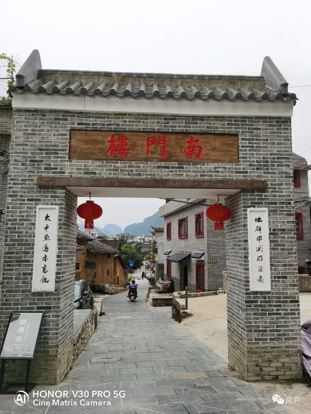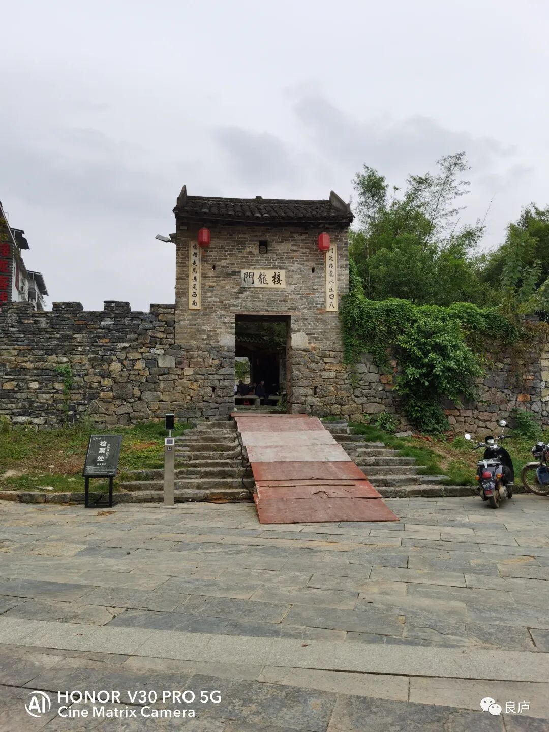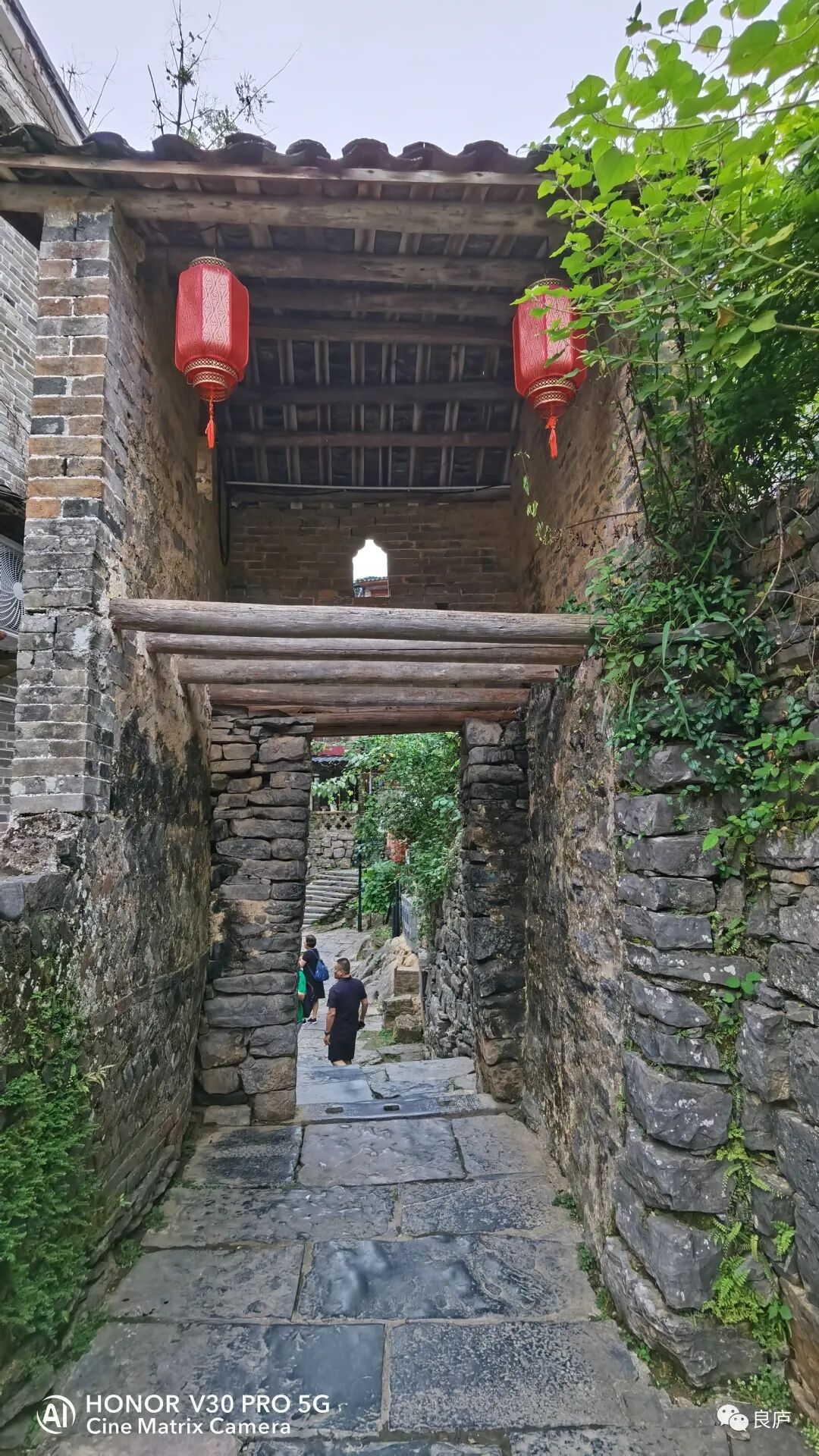 我们还是从接龙门进,门口一亭子,亭檐长满小草,看着也是古色古香,问酒店老板,他说他自小就在亭子里玩,他也不知道亭子什么时候建的,我们在边上也没找到文字说明。