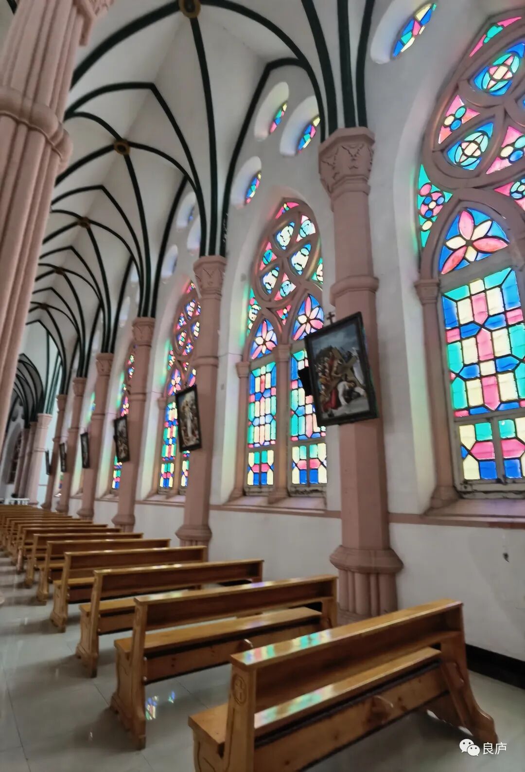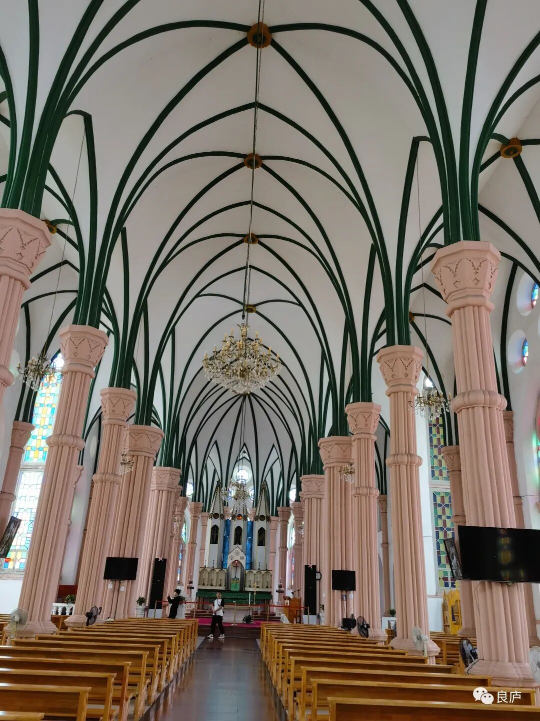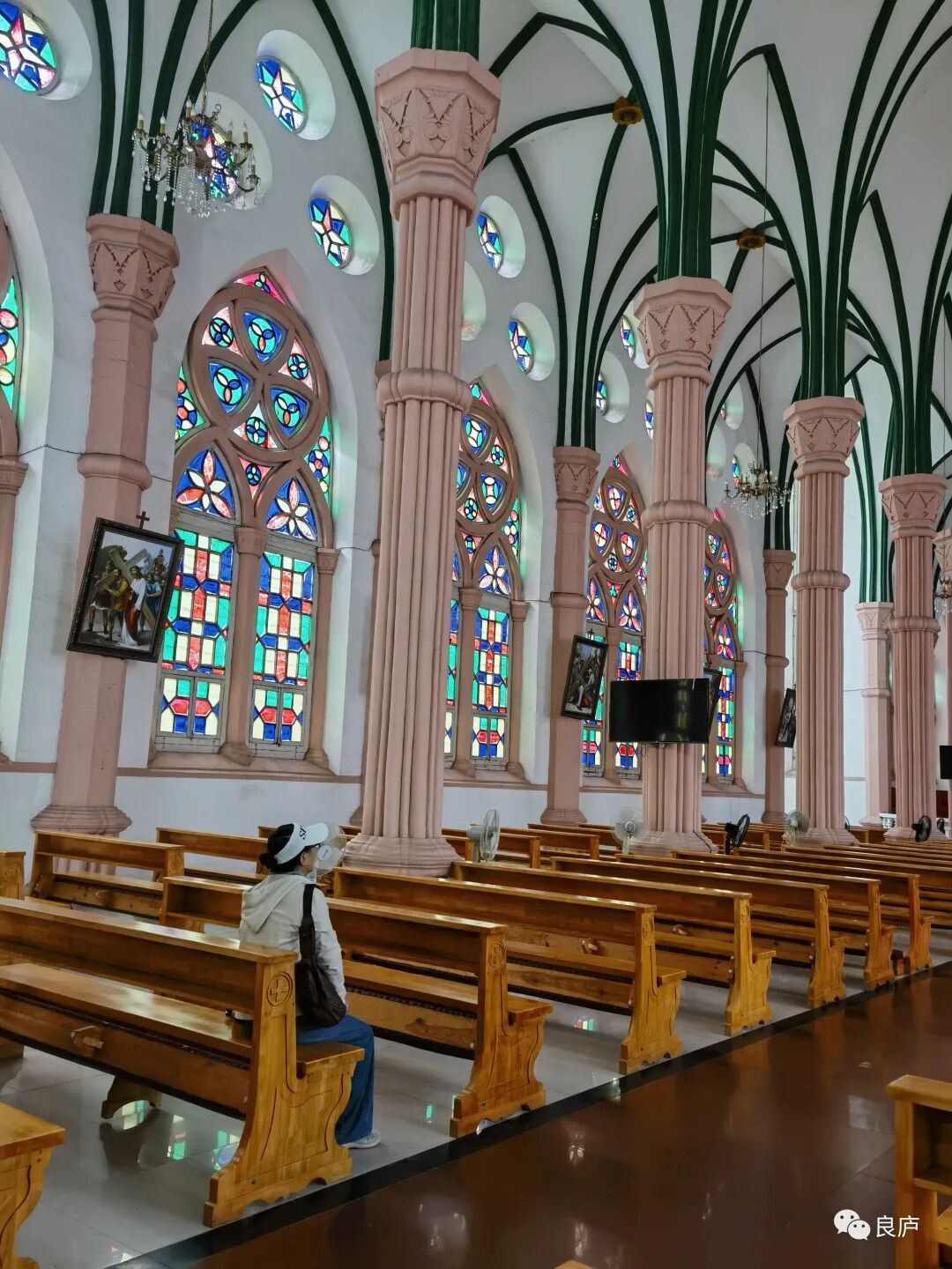 最震撼的是圣若瑟教堂——由法国传教士历时十年建成,至今已逾百年的大教堂!中午经过时就被它古朴又不失色彩的别致外观强烈吸引,只是当时大门紧闭,本来以为只能在门外拍几张照了,下午过来再看,居然大门敞开,激动得我们赶紧跑去和门口工作人员咨询:可以进入,也可以拍照!✌✌我们敛声屏气、轻手蹑脚走进去,再次被教堂内部的高大宏伟和华美壮观震撼,我这样一个始终培养不起宗教感的人突然想——强烈的形式感和恰当的仪式感是不是都可以让人们更容易接近上帝?!