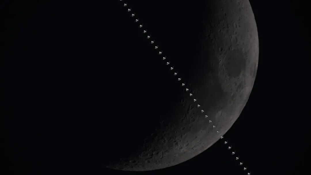 2021年1月18日傍晚,提前查好了国际空间站ISS将穿过月亮,在天台架好了设备,等待这一刻。
