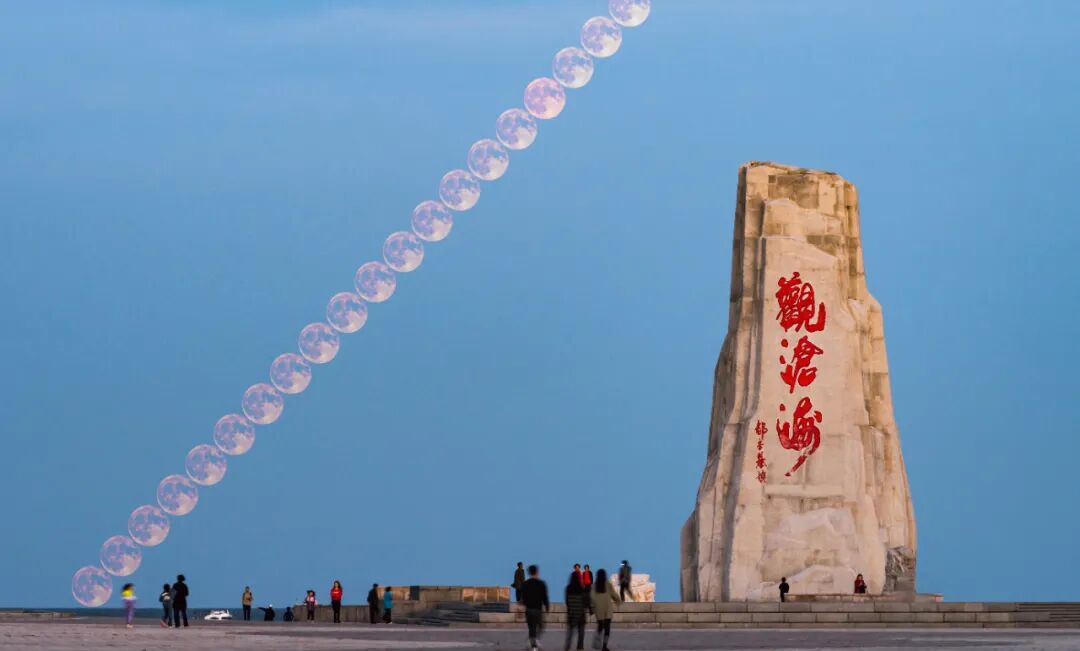 曹操北征乌桓胜利班师,途中登临碣石山(今辽宁省葫芦岛市绥中县境内),面对大海的雄伟壮丽,写下了著名的《观沧海》。2020年的八月十五不巧赶上了阴雨天气,八月十六终于晴了,一轮明月从海面升起。月光下站在海边,领略着历史上曹操当年的雄心伟志和宽广胸襟。