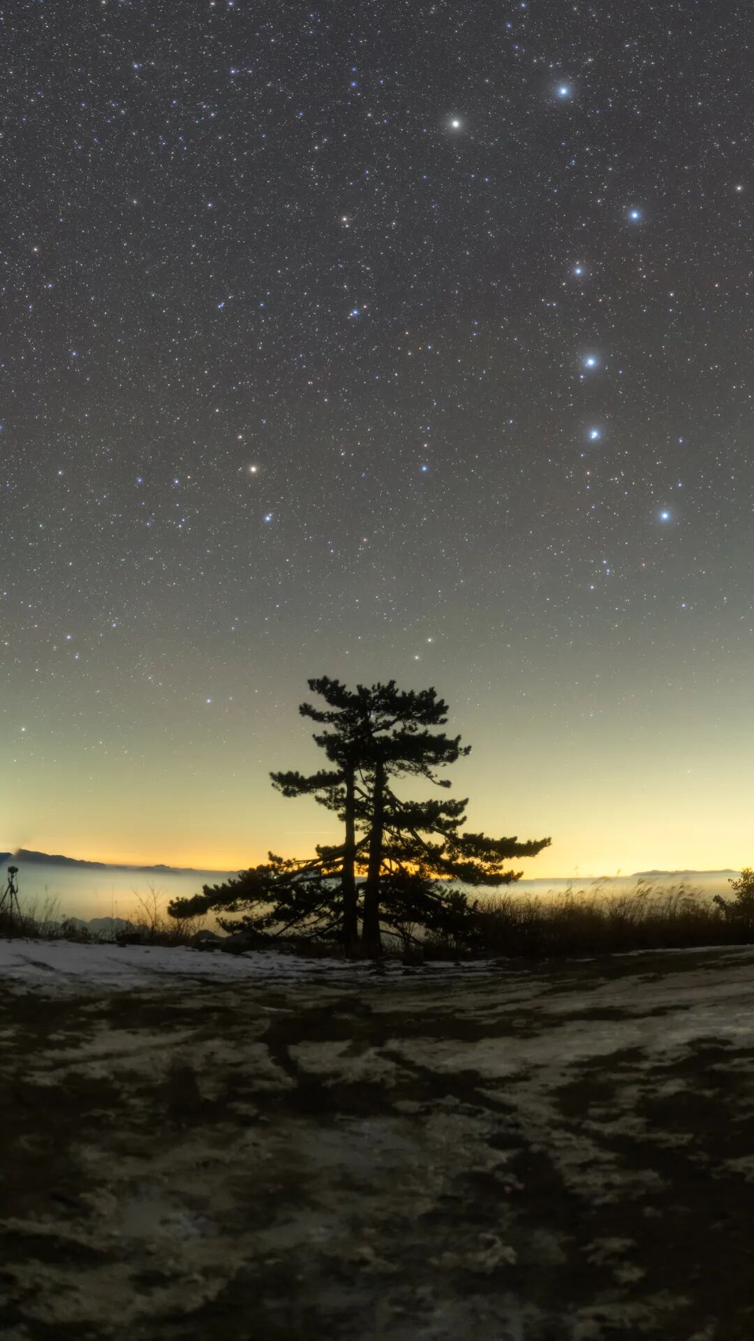 1月的凌晨还是很冷,临时决定驱车3小时来到牵牛岗,就为了看银河从地平线升起。