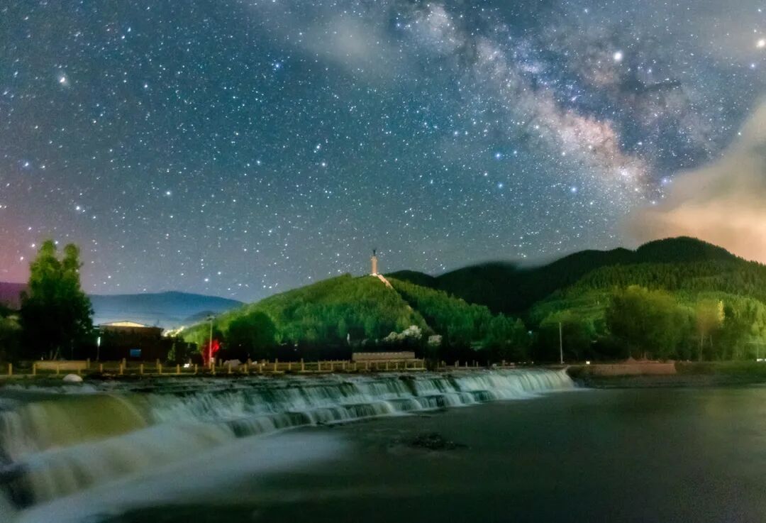 矗立于松潘川主寺元宝山顶的红军长征纪念碑总碑,号称“中华第一金碑”。夏季的夜晚,银河从元宝山后的天际换换升起,与山下流淌的岷江一同陪伴着金碑与红军英烈。