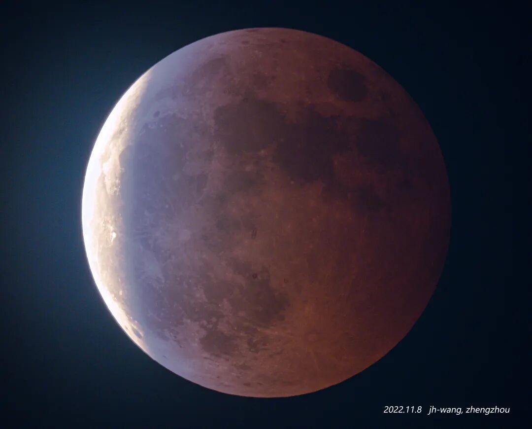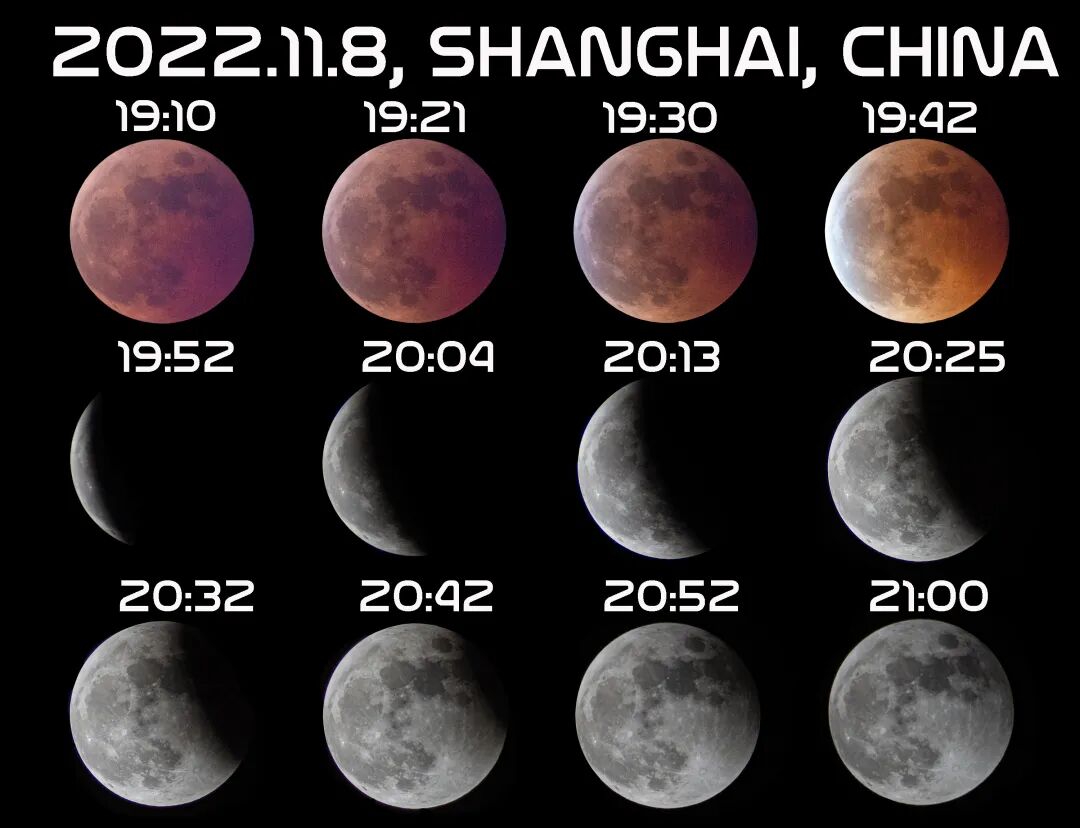 2022年11月08日,月全食天象现身天宇,明月从生光到复圆过程中不断“变脸”,尽显阴晴圆缺之美。