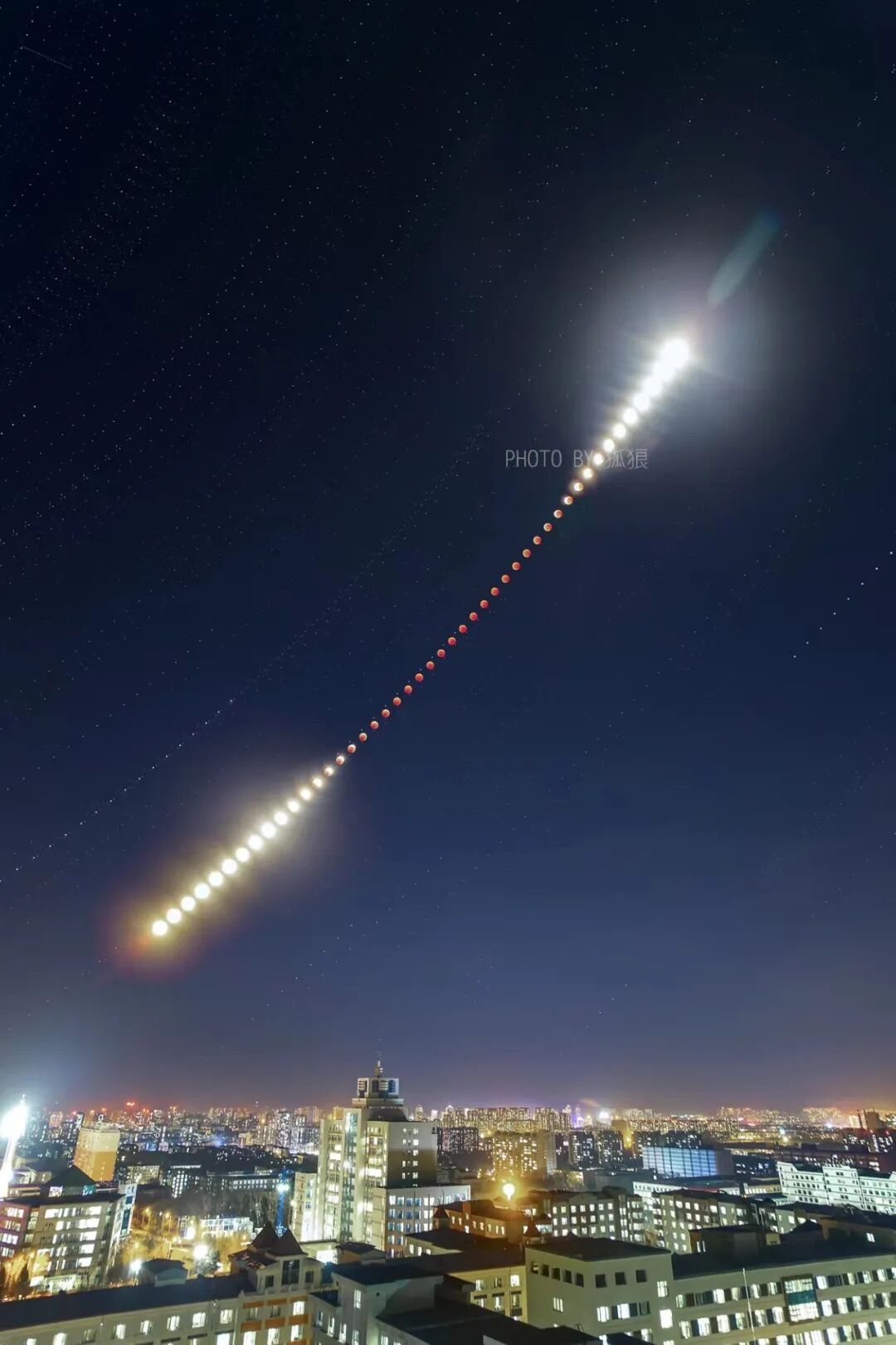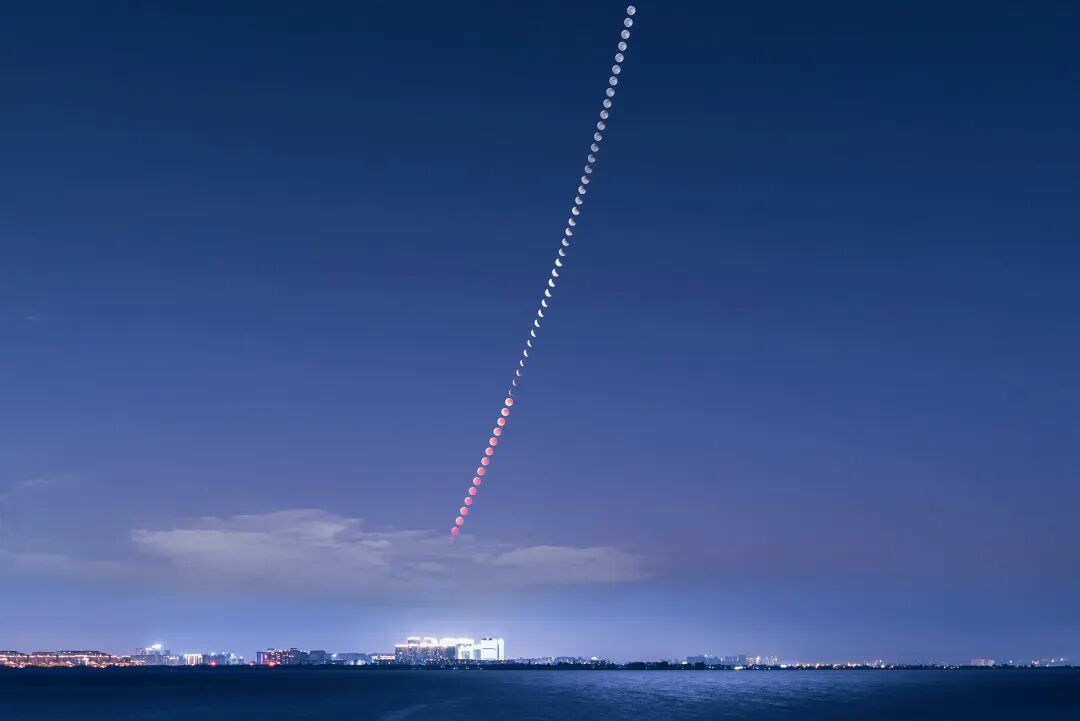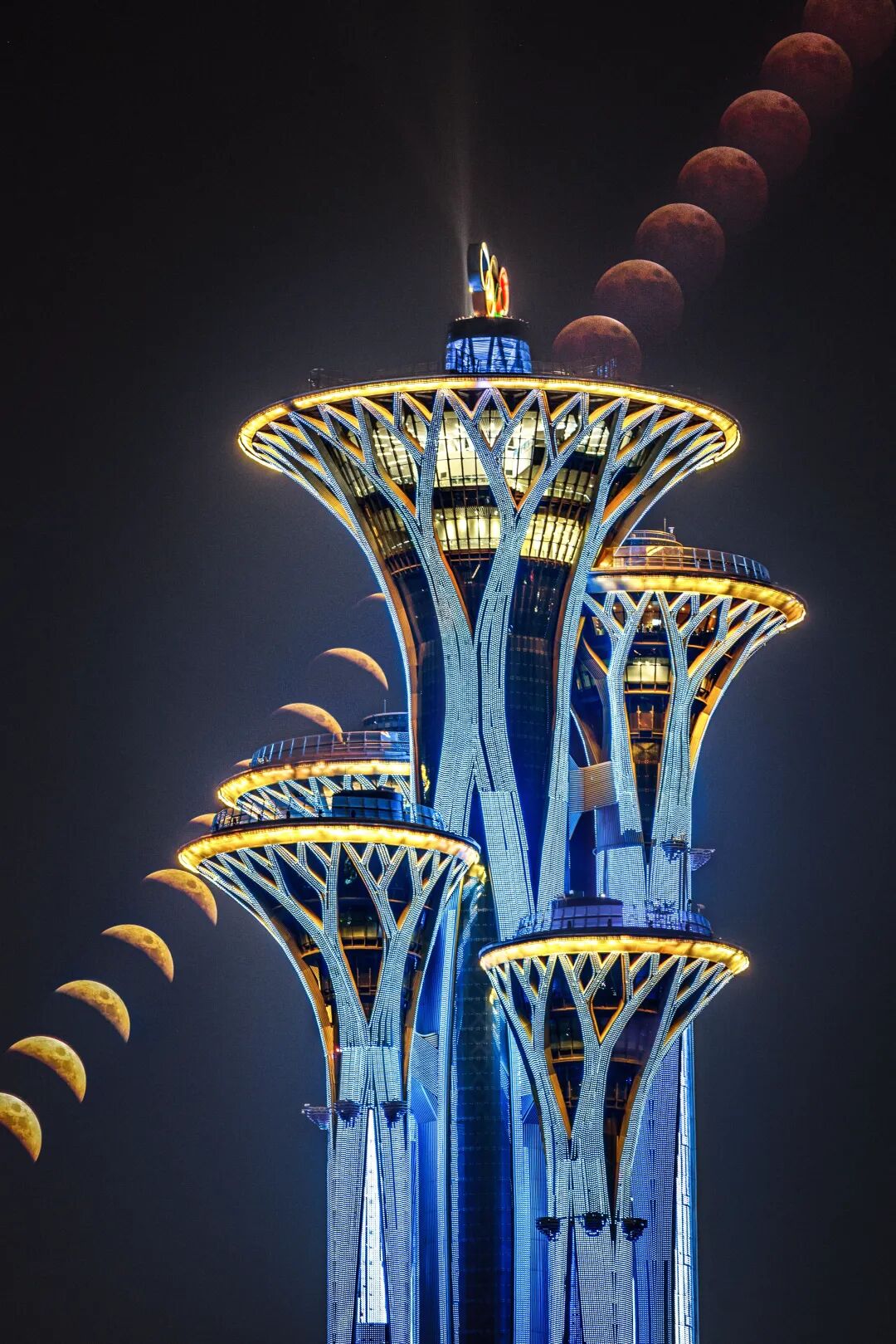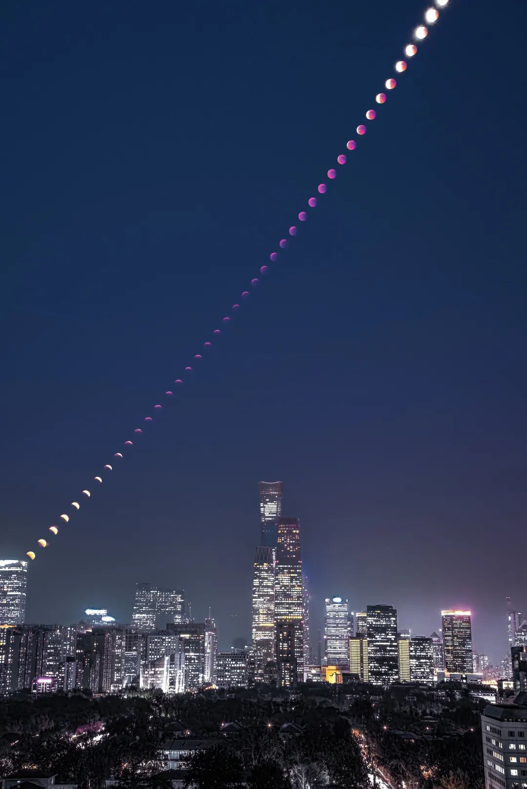 11月8日,全民关注月全食。在首钢国际大厦,我用相机持续记录了月食的各个阶段变化,用7张做了叠加,展示不一样的月食之美。