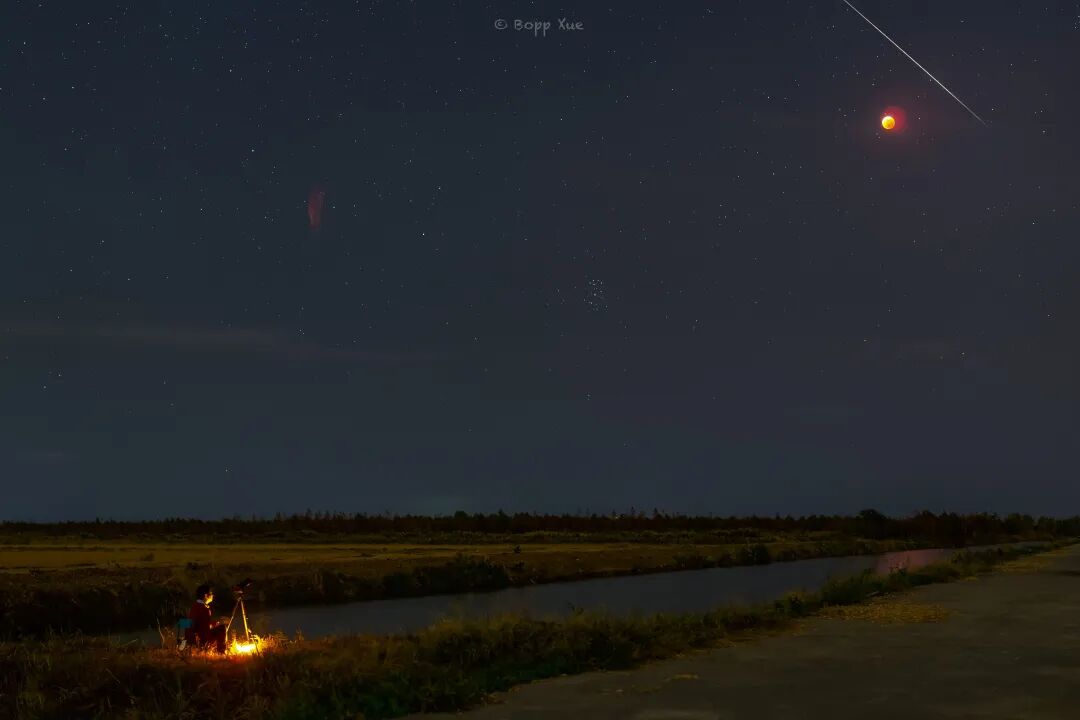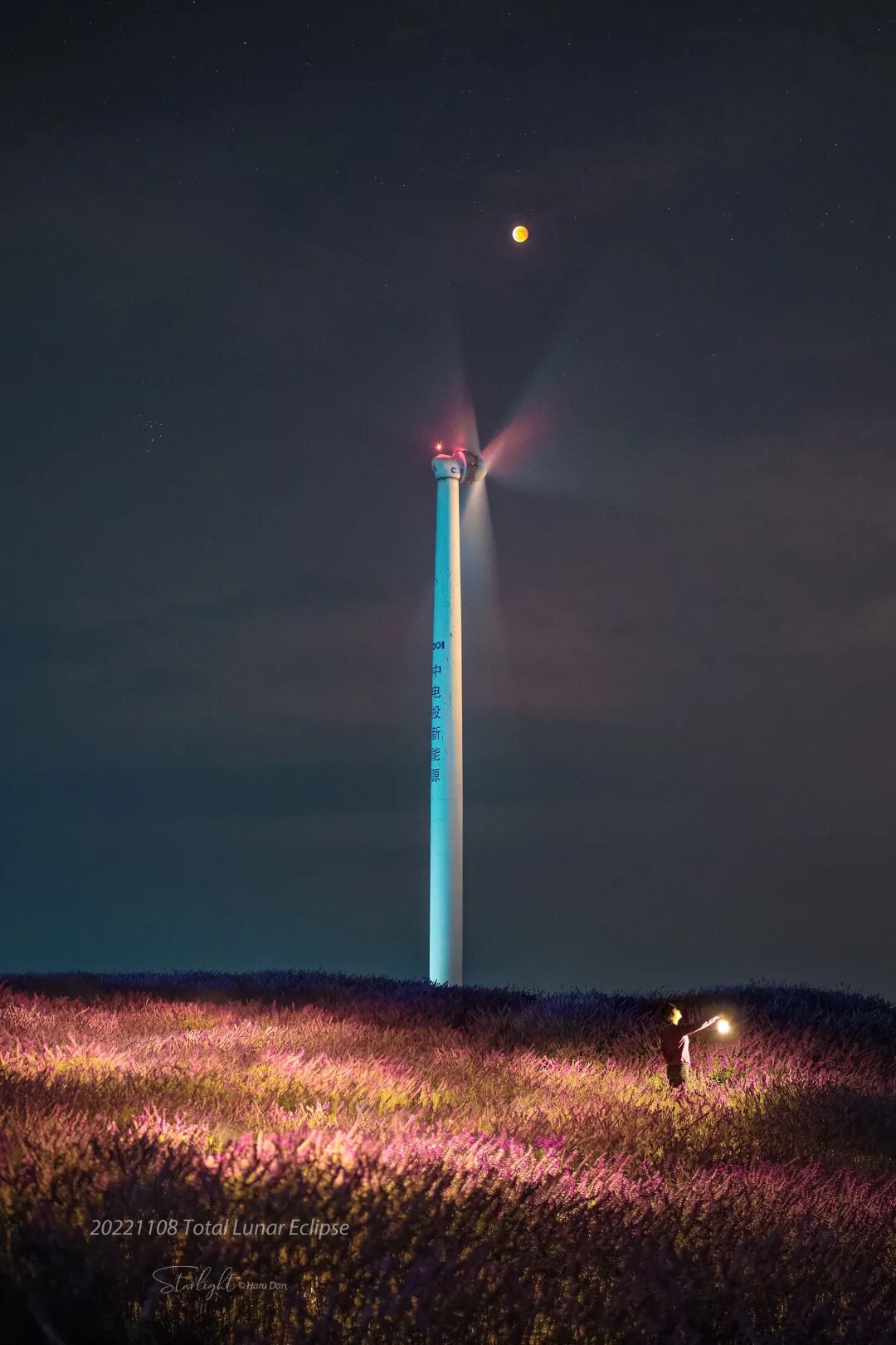 秋天,是收获的季节,在这片希望的田野上,摄影师不但收获了策划一个月的月全食画面,更是意外地收获了一颗明亮的流星。