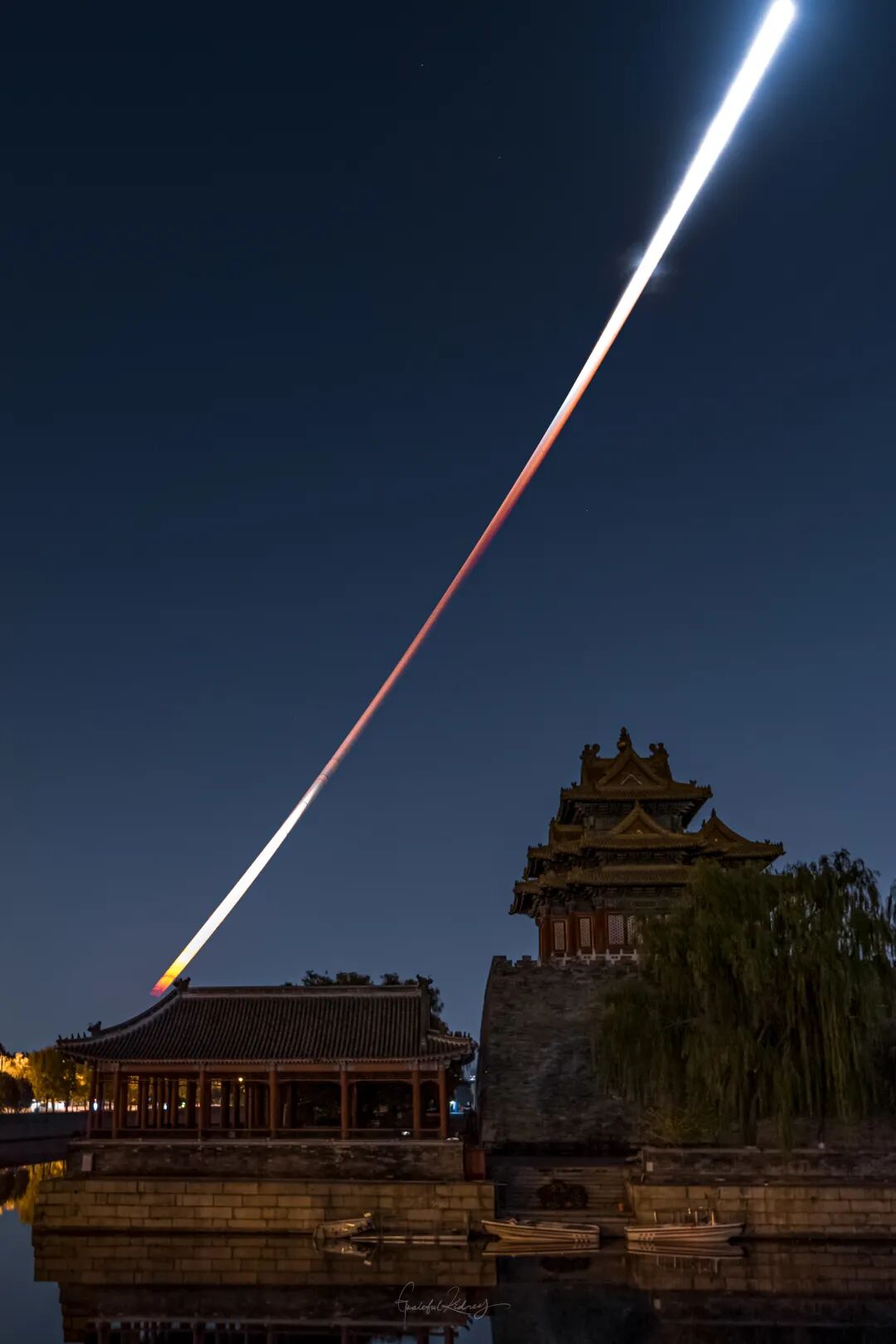 2022年11月8日月全食升上故宫角楼,800张堆栈记录了月全食的全过程。