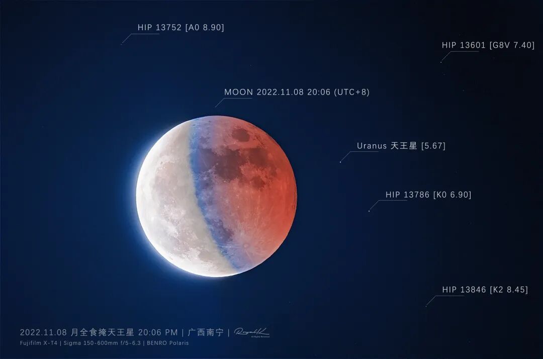 11月8日,年度最牛天象月全食+月掩天王星,天文的朝圣,天爱的狂欢。如期到达机位,用镜头记录了城市月全食变化的全过程。