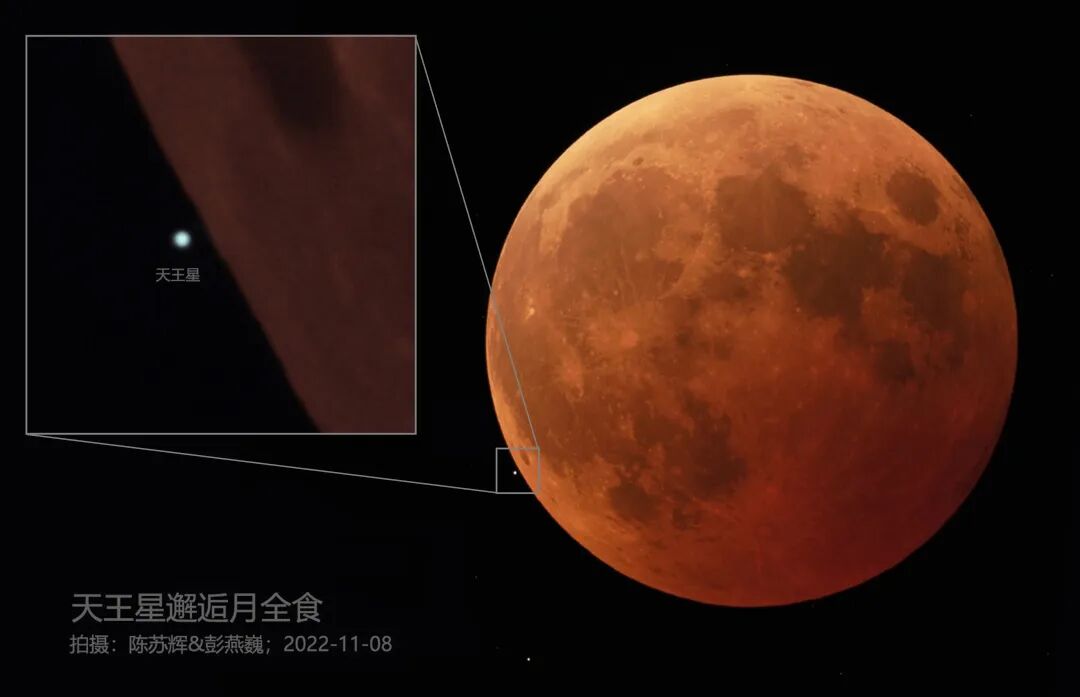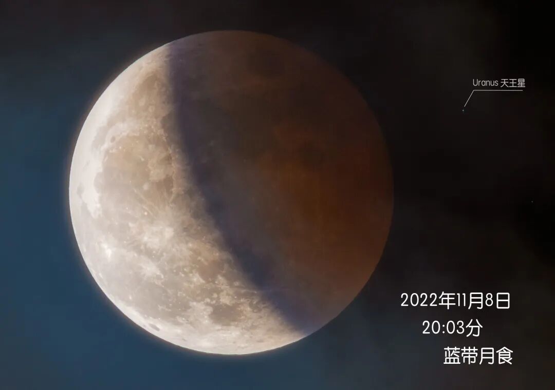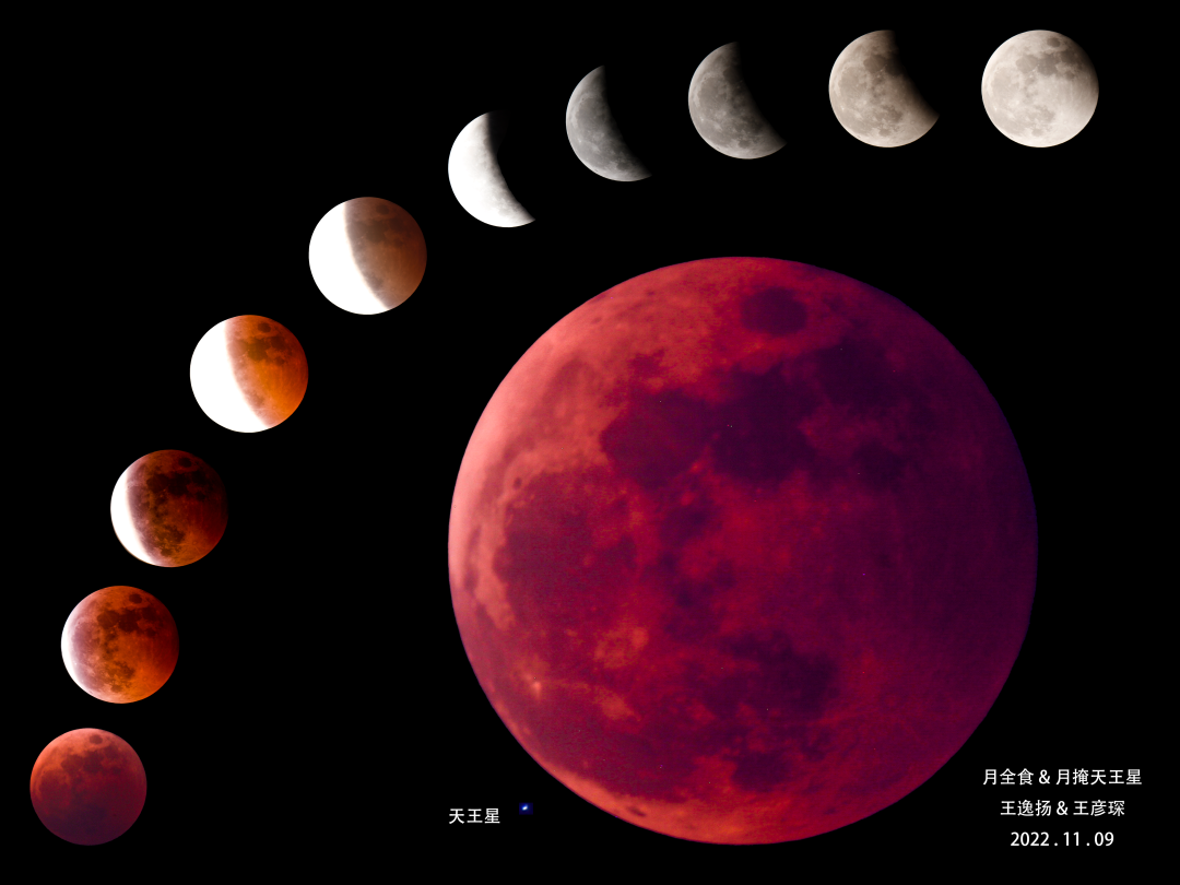 2022年的月全食终于落下帷幕,北京当天多云整天aqi100左右,当大家都以为没有希望的时候,月亮从高楼后缓缓升起,我和我的朋友十分激动并记录了这次月全食的整个过程。本次月全食还上演了罕见的月掩天王星现象,上一次月掩天王星发生在23年前也就是1999年11月15日,下一次则要再等16年直到2038年4月12日;若再将月全食的条件纳入,则下一次月全食掩天王星是2322年后的4344年8月8日,因此可以说,这就是我们最后一次体验月全食掩天王星的机会。作为一个天文爱好者能拍到此次月全食掩天王星现象也十分幸运。