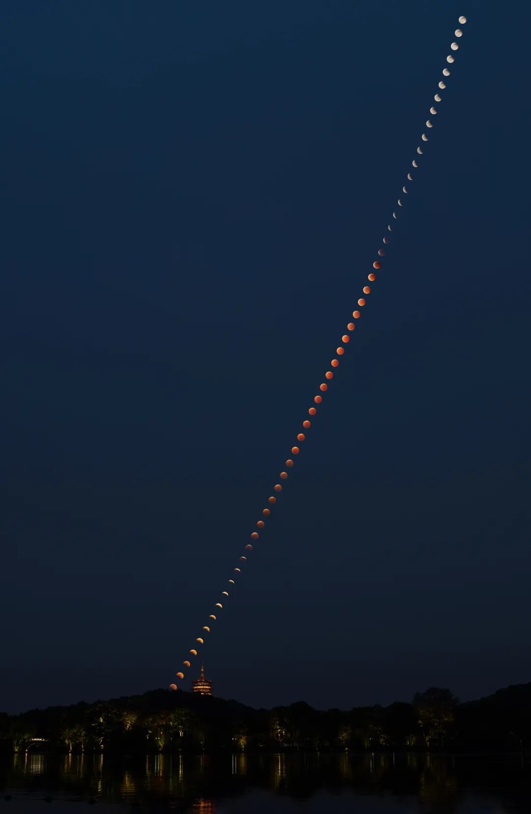 自2018年来,本年度11月的月全食,已经是第四次了。和以往不同的是,这次我们这边的月全食从初亏到复圆相对前几年要完整的多,时间跨度三小时四十分钟。因雷峰塔是拍摄旺点,和朋友们提前二个半小时到现场抢占机位,最后能完整的欣赏完这次月全食全程的人并不多,而总耗费六个多小时的拍摄时间,体会了一把心灵在天堂,身体在地狱的感觉,这种酸爽的感觉,来的特别畅快。