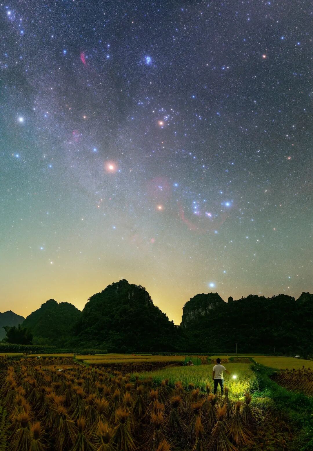 10月下旬,布泉河流域金灿灿的晚稻已到了成熟收割的季节。这一夜,我在满天星辰下,在成片的稻田中,听着虫鸣,闻着稻香,仰望星空,感受着丰收的喜悦….广西布泉乡位于隆安县的西南部,距离县城45公里。布泉乡是石山区,耕地面积22622亩,其中水田1300亩,这里星空环境优秀,是广西首府南宁周边不可多得的星空暗区。
