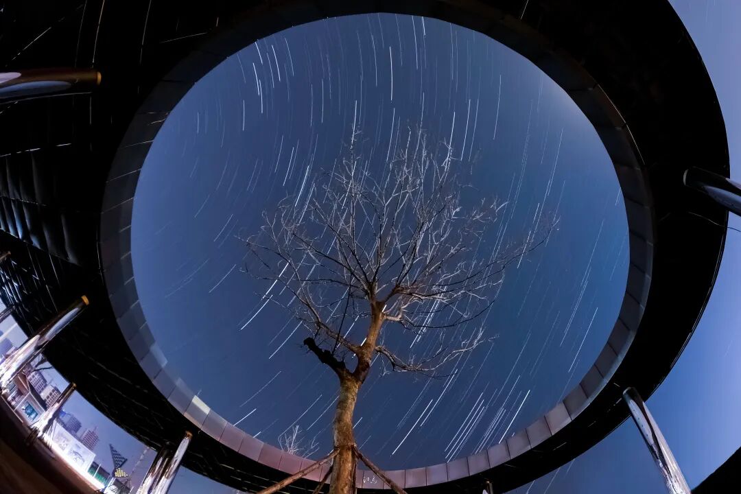 新入手的鱼眼镜头,当晚就去了之前踩好的地点,果然刚刚好。树从圆中触摸星辰,那是生命的律动。