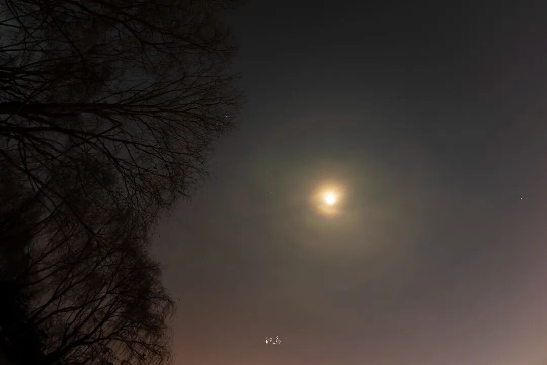 2023年的第一张天象,交给月晕月华,火星在晕内,木星在晕外,交相辉映,熠熠生辉。