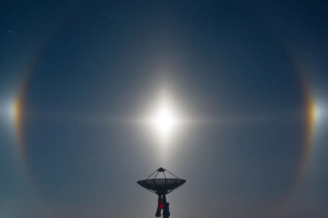 罗辑第一次接触质子,看到宇宙闪烁的地方,除了红岸,还有北京密云的射电天文观测基地。《三体》的热播让更多的人认识了射电望远镜,他就静静的聆听宇宙中的“私语”。1月15日一行人有幸见证了射电望远镜下的幻月奇观。