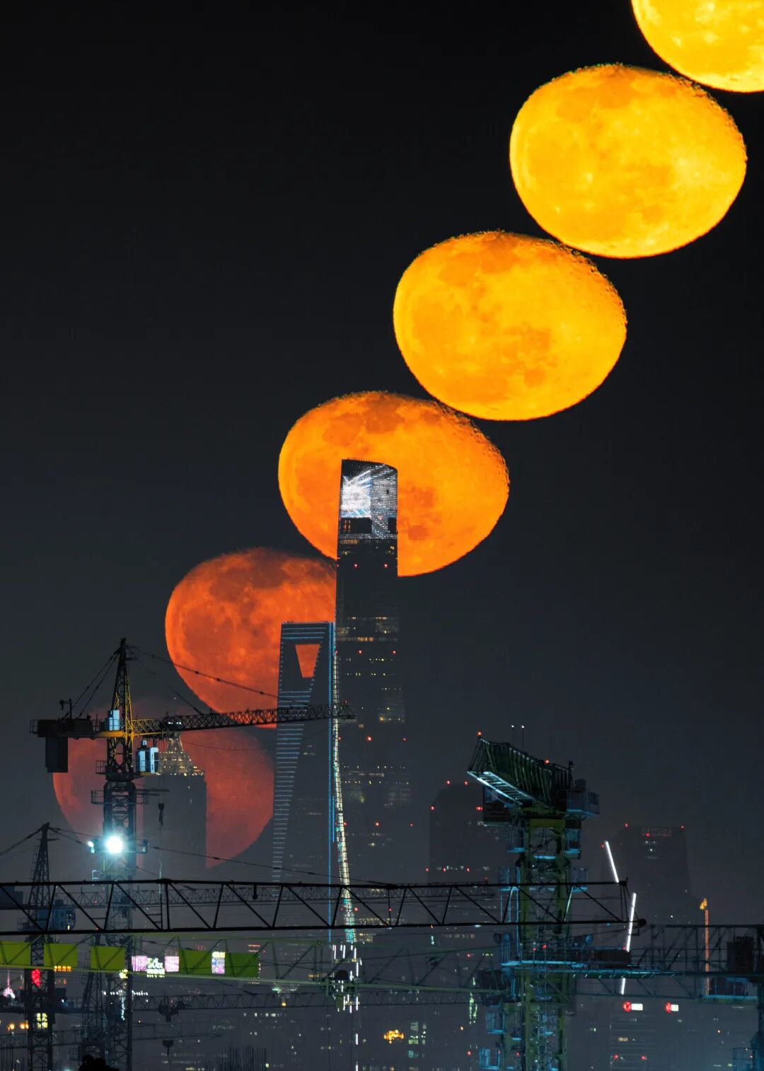 经过和好友仔细的计算以及提前踩点,最终在一栋居民楼顶拍下来月亮从陆家嘴三件套升起来的画面。旋转的吊塔和陆家嘴互相映衬,巨大的悬月从外滩的背后升起,2023充满了希望与活力!