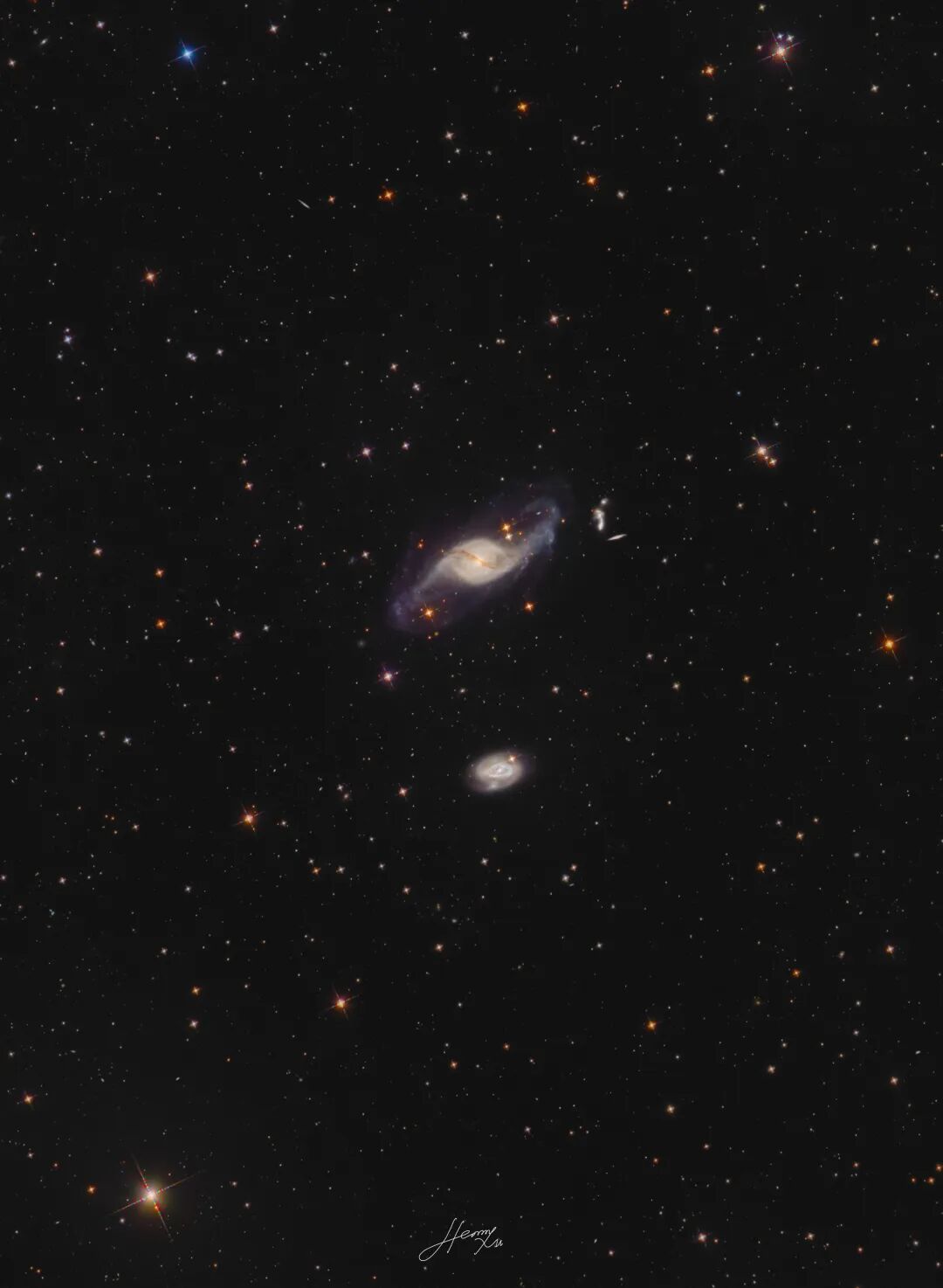 NGC3718,也称为Arp214,距离地球约 5200 万光年的透镜状或螺旋星系,也是大熊座星团的成员。NGC3718 呈扭曲的 S 形,可能是由于它与另一个位于 150,000 光年外的螺旋星系NGC3729之间的引力相互作用所致。