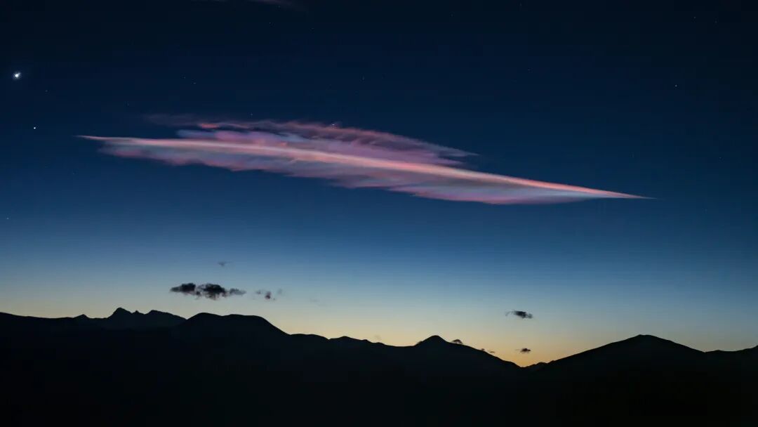 大年初三,我们巡礼于喜马拉雅之间,追逐着腾飞在世界之巅上的彩云。夜幕降临后,在回程的珠峰路上,我们惊喜地看到彩云久久未散,在虹彩依旧的同时伴随着罕见的开尔文-亥姆霍兹波,在星点的映衬下如梦如幻,宛如夜空送来的一条彩色丝带,为我们的彩云之旅献上绝美的压轴。