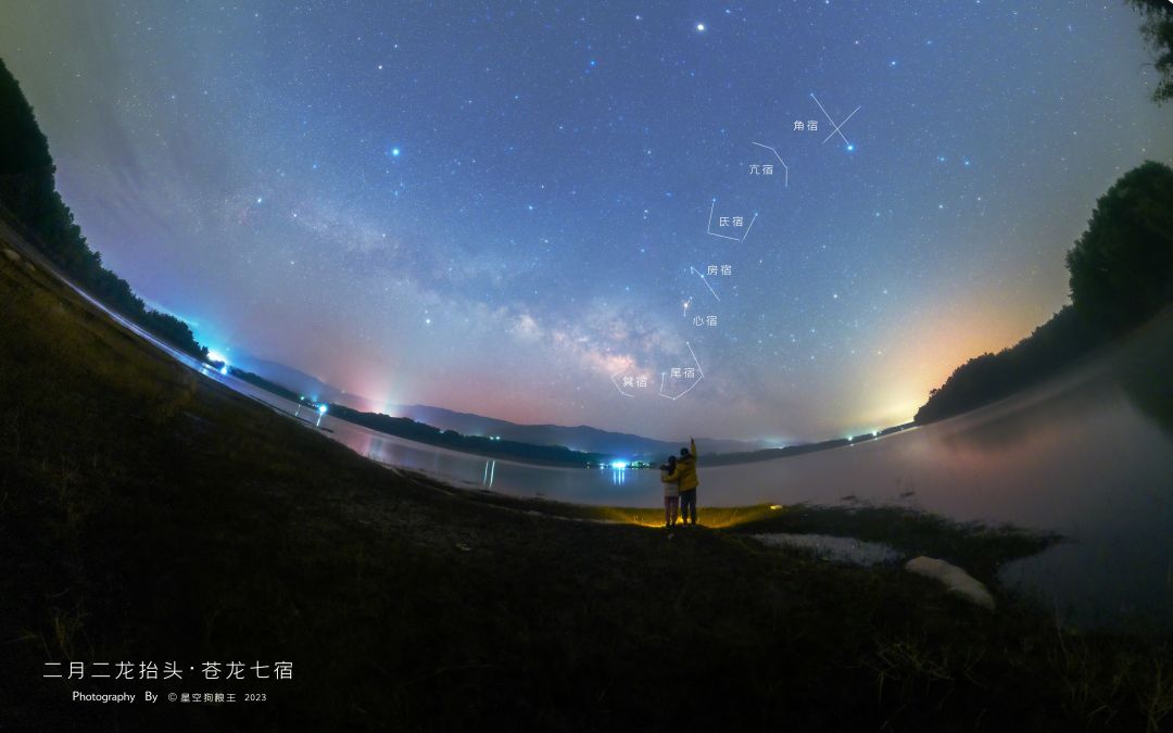 【每年的二月初二是中国民间传统节日“龙抬头”,“龙”指的是二十八宿中的东方苍龙七宿星象。七宿分别叫做:“角、亢、氐、房、心、尾、箕”,七宿组成一个完整的龙形星象,其中角宿代表龙角,亢宿代表龙的咽喉,氐宿代表龙爪,心宿代表龙的心脏,尾宿和箕宿代表龙尾。苍龙七宿的出没周期与一年农时周期相一致。春天农耕开始之际,苍龙七宿在东方夜空中开始慢慢上升,最先露出的是明亮的龙首——角宿;夏天作物生长,苍龙七宿高悬于南方夜空;而到了秋天,庄稼丰收,苍龙七宿也开始在西方下落;冬天万物伏藏,苍龙七宿则隐藏于北方地平线以下。】