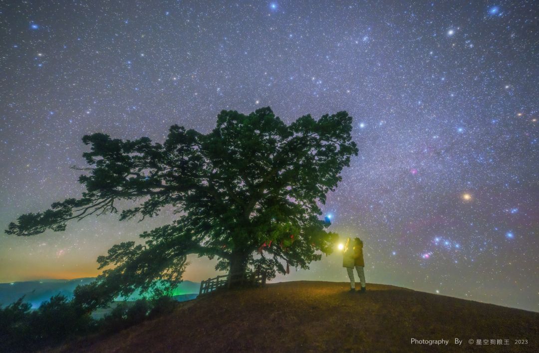 猎户西沉,船底正高,我们把心中美好的愿望向老龙树诉说。微风拂过,老龙树轻轻地点点头,似乎不久的将来我们的心愿就会实现。【*云南昆明东川红土地的千年老龙树是一颗巨大古老的千年冷杉,高约10米,树干直径约3米。这棵树一年到头都很茂盛常青,树叶四处蔓延,形成一个巨大的伞状。因曾枯死三年又再吐新枝而被当地尊为神树。千百年来,老龙树守护着这片广袤的红色土地,顽强、威严而神圣。】