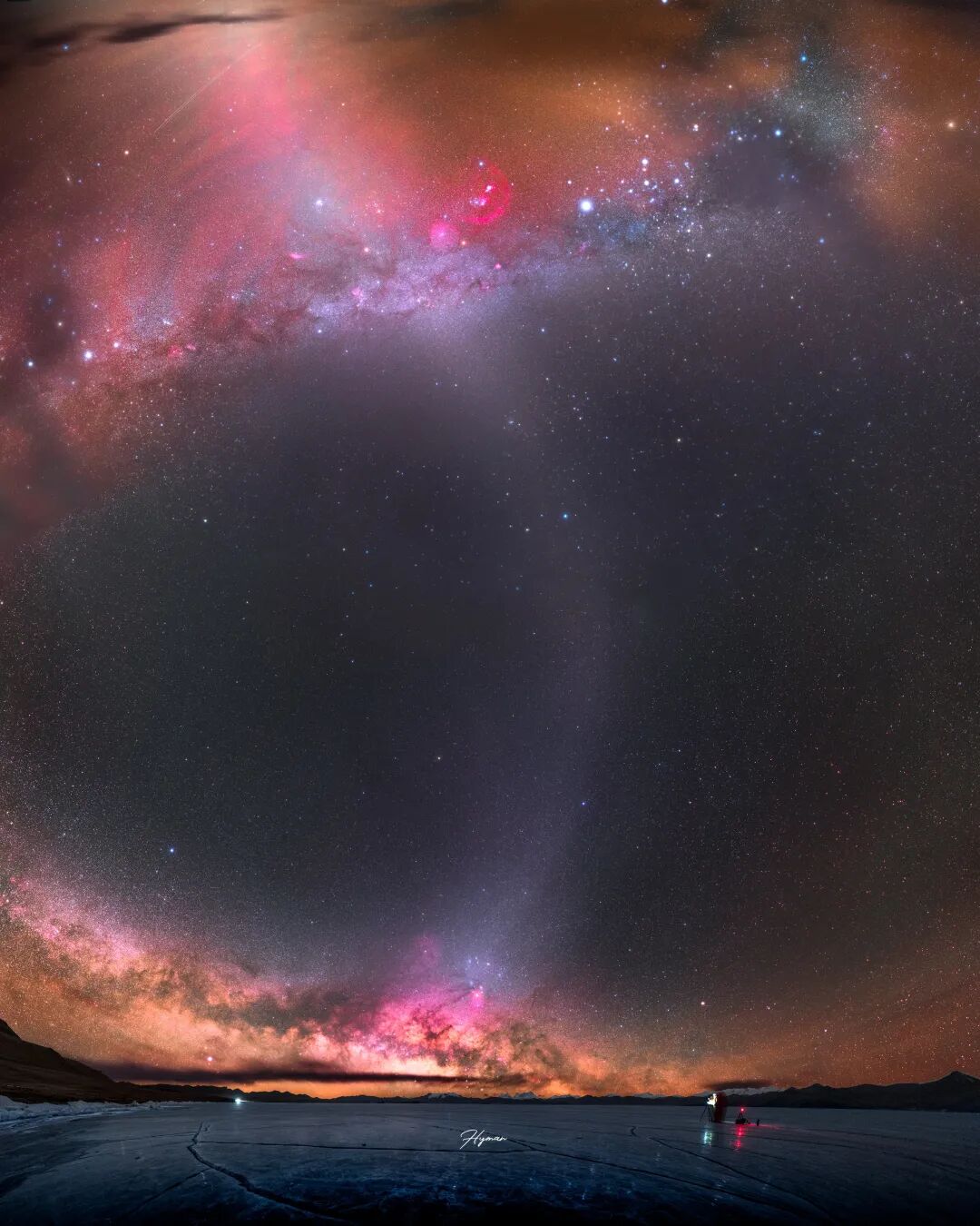 入夜时分冬季银河带着耀眼的猎户横穿穹顶,黎明之前夏季银心又悄然爬上了地平线,这便是春天,银河宛如一条巨大的金龙,初探头颅,摆尾在天。这正是易经中见龙在田之象,寓意经过一个冬天的蛰伏,潜藏积蓄了足够的力量,开始崭露头角,象征着一切成功的开始。