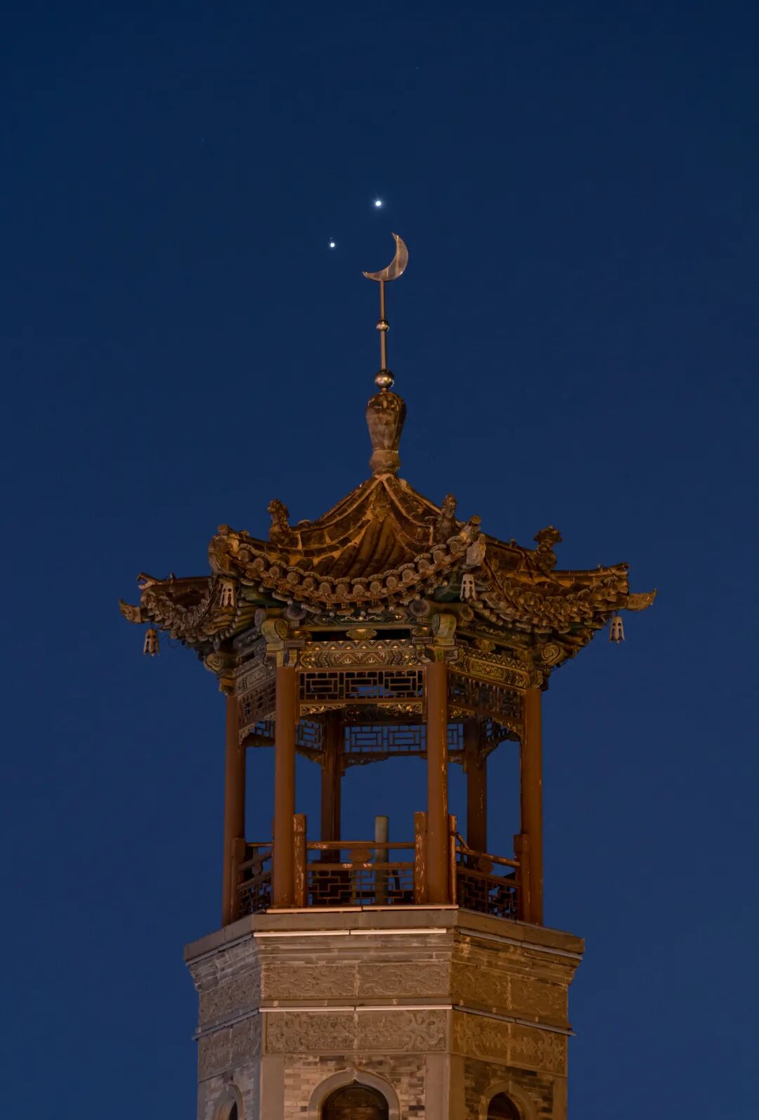连续十八天的蹲守,同一时刻,同一机位,同一参数拍摄,金木双星在西方天空中画出十字,跳着华丽的舞步。庆幸这些天的天气晴朗,才能让我一睹其风采。