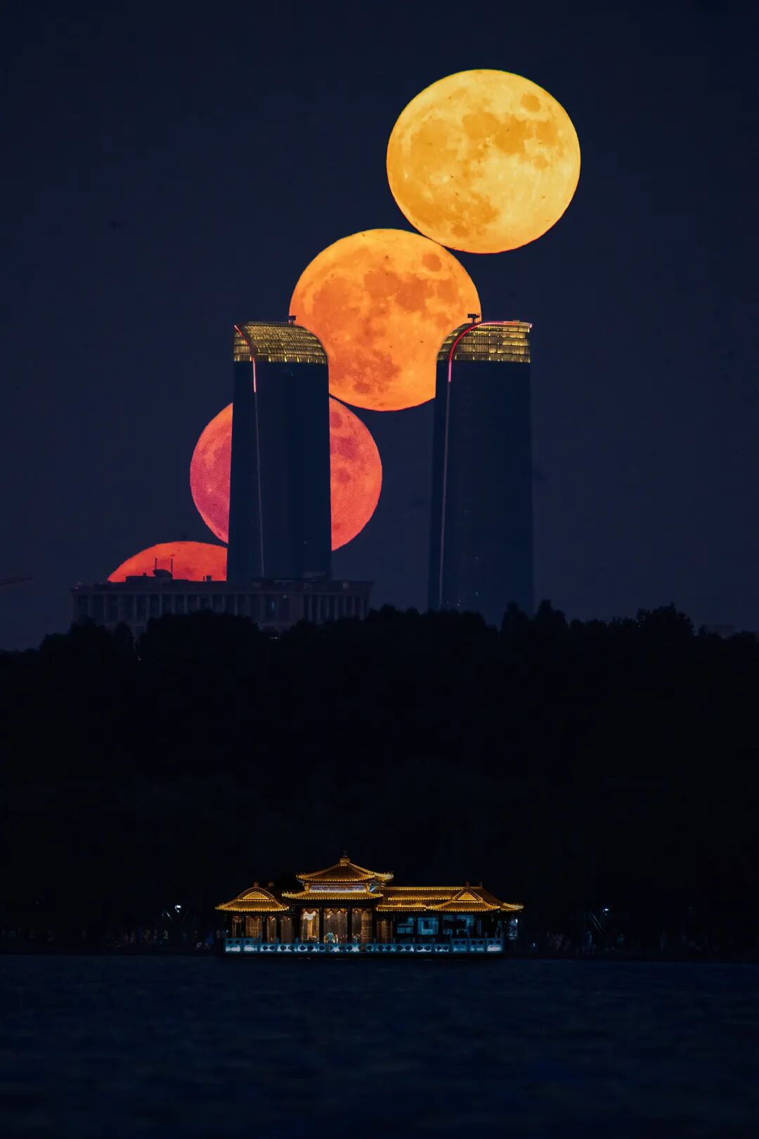 2022年中秋,杭州之门伫立在钱塘江畔,是杭州的新地标建筑,当一轮圆月慢慢爬至杭州之门顶端,这是最圆满的时刻。