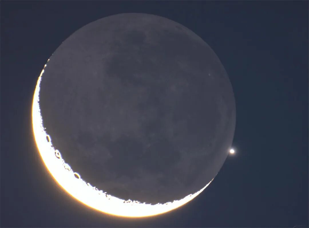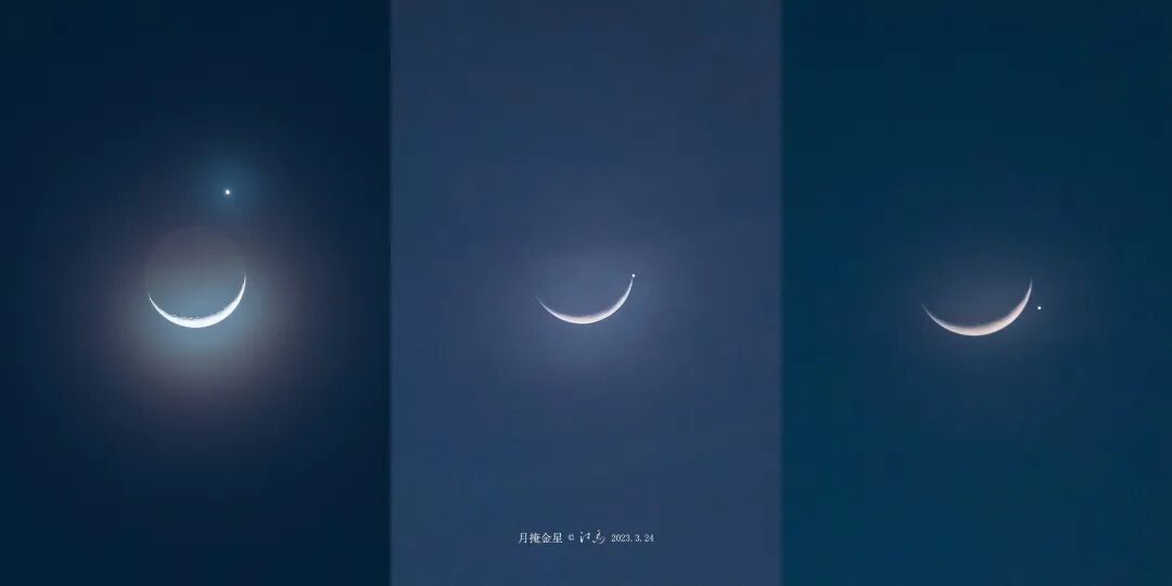 3月24日黄昏,月掩金星如约而至。因为地理位置原因,东北地区只能看见金星伴月,月亮和金星擦肩而过,两者距离非常接近,在宇宙中上演美丽的星月童话。