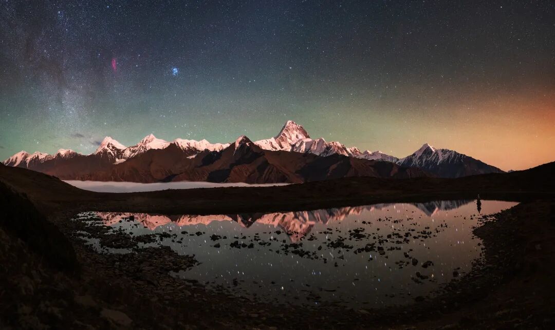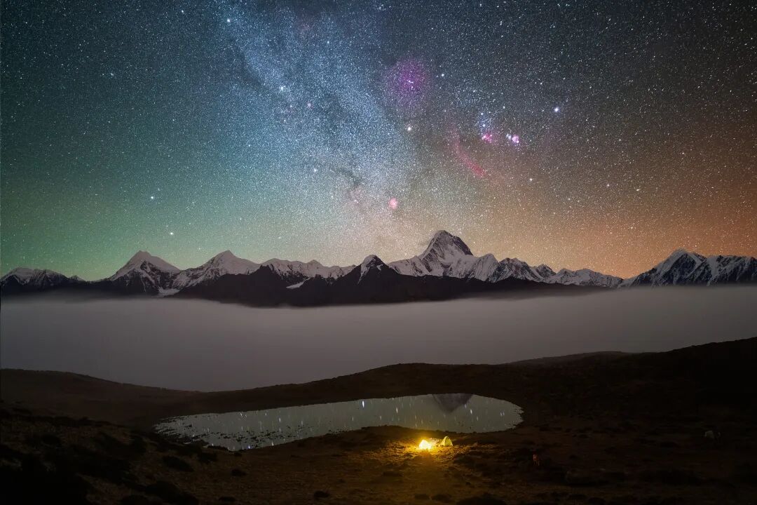雪山、云海、湖泊和漫天的星辰同框。能够站在这样的场景里,我想这是我最大的荣幸。