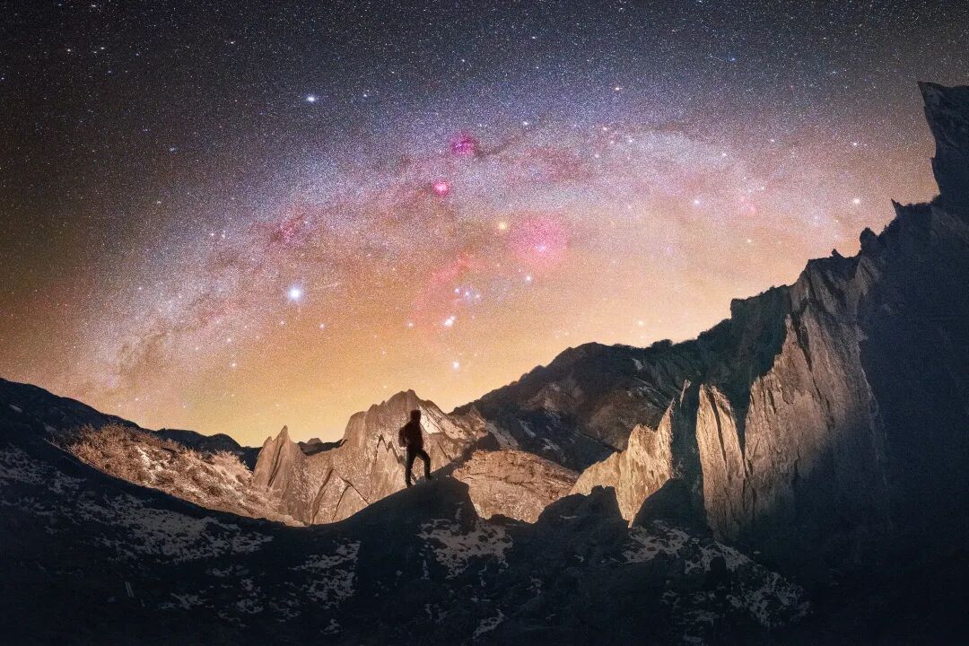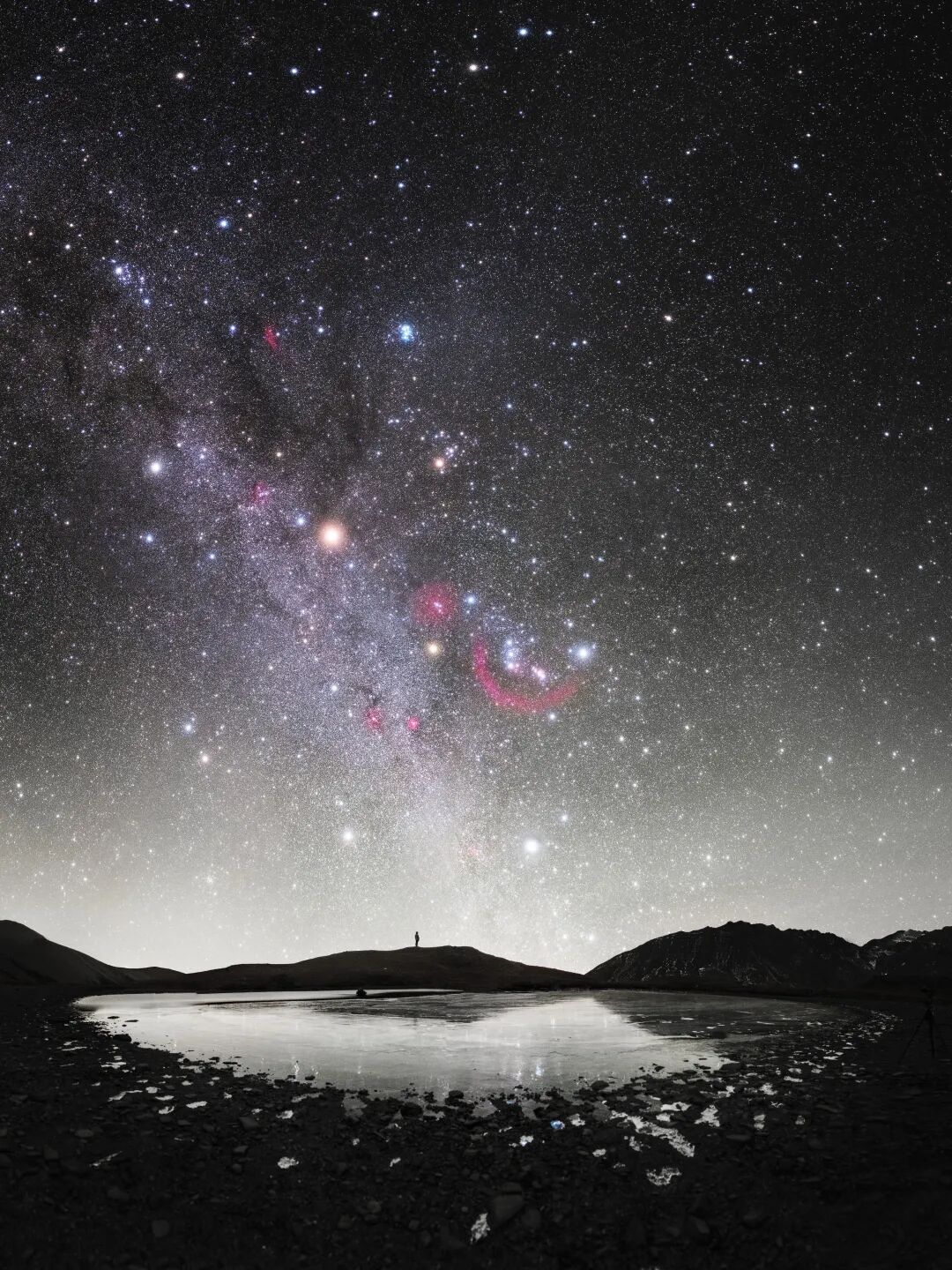 星空似乎有一种难以言说的魅力,吸引我去认识和了解它。我是一个不太擅长与人打交道的人,因为作为高敏人群,与人相处时,我总是担心自己的言行会引起别人的不适。但是,在漫天的繁星下,我却感到无比舒适,忘记了极寒、缺氧的不利环境,绚烂的银心、璀璨的调色盘星云、精致的猎户座星云,还有宏大的巴纳德环,它们让我深深地着迷。我拍摄银河的各种形态,拍摄各种星云,拍摄不同的地景,就是希望能记录下它们的美,让更多的人认识它们,了解它们。