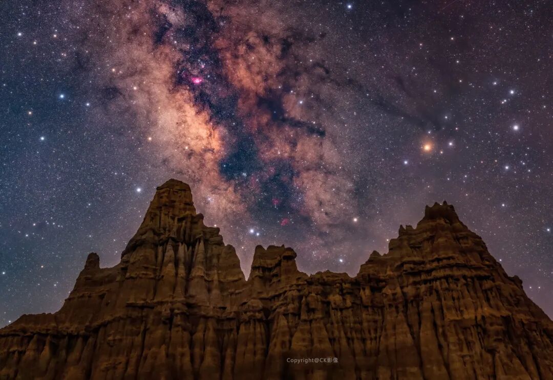 云南的元谋土林是流水侵蚀地貌的一种特殊形态,有的像古城堡,有的像神话殿宇,有的像冲天巨剑,有的像展翅的雄鹰,像奔驰的骏马……这些水土流失的艺术结晶被人们誉为“疯神捏造的世界,童话里的龙宫和仙山”。在一个极透的天气我有幸通过中长焦马赛克拍摄的方法记录下了这仙山龙宫上极致璀璨的银河系中心,93张照片拼接的最终成图大约2亿像素。