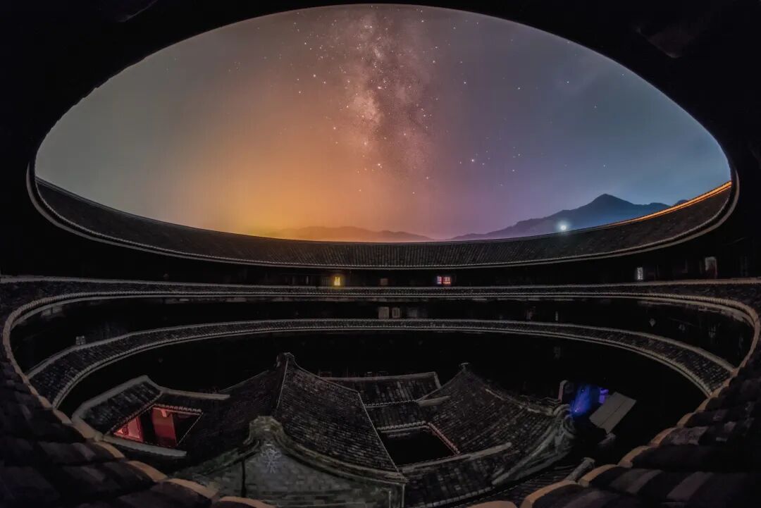 一直想往土楼方圆世界里的星辰大海,湖坑镇新南村已有180年历史的衍香楼是给予我印象最深的一座土楼,建筑外墙如此精美,雕工精巧,主楼按八卦构建,楼内厅仿府第式建筑。能够有幸进入楼内拍摄星空,欣喜万分,这里少有住民,楼内只有极少的暗光,不过远处村庄的光污染对于成片还是有不小的影响。