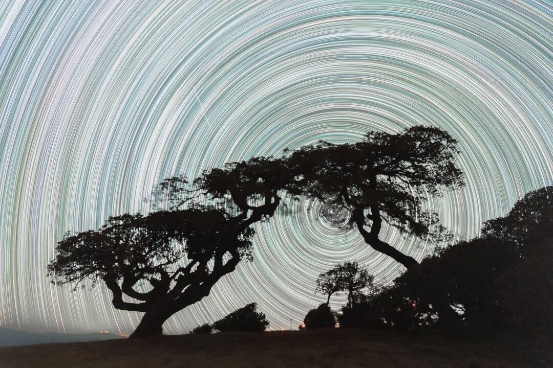 连理枝,顾名思义,就是两棵树的枝干连生在一起。在云南大理的洱源县就有这样一对自然生长的连理枝。我用一整晚的时间记录下了连理枝和星轨同框的画面。“在天愿作比翼鸟,在地愿为连理枝。”作为背景的星星轨迹形成了无数同心圆,也寓意了长长久久、圆圆满满的爱情。