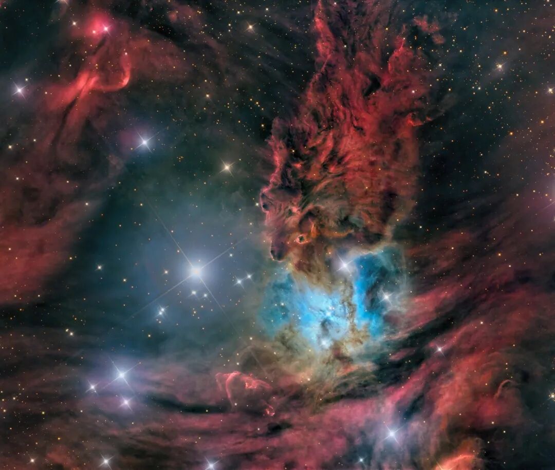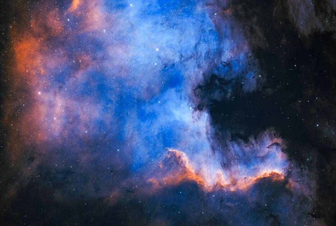 目标为北美星云局部。北美洲星云非常巨大,在天空中涵盖面积超过10个满月的大小,但表面亮度却非常低。利用长时间曝光和快焦比望远镜,将宇宙中孕育生命与光辉的温床以照片的形式展现。