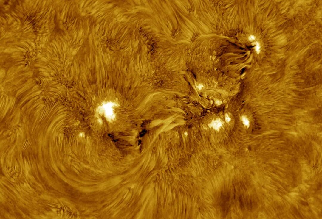 因南方梅雨频繁,魔都无法拍摄太阳,幸运在7月2日早晨抓住短暂放晴机会拍摄到巨大黑子群AR3354;黑子群东西最大跨度约14万公里,可放12个地球,或者1个木星!按磁场分类是复杂三角形结构的β-伽马,色球图像可以看到美丽的磁力线、太阳色球谱斑和针状物。