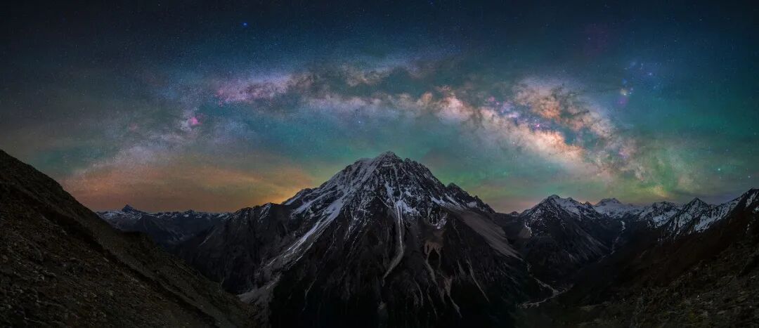 之前还没有到过云绕雅拉观景点,已经向往很久了,曾经几次计划前往,都由于种种原因没能成行。去年底一次和朋友前往,离目的地还有几公里的时候汽车出问题,又只能打道回府!今年的5月23日这天终于来到了梦寐以求的云绕雅拉观景台,第一次离雅拉神山如此近的距离,站在山巅,只见对面如莲华形状的雪山耸立于群山之间,呼啸的风声中仿佛带着神山的气息……这张雅拉雪山银河拱桥是早就通过软件计划好了拍摄时间和参数的,零点过后,银河如约而至到达雅拉上空,拍摄过程非常顺利。