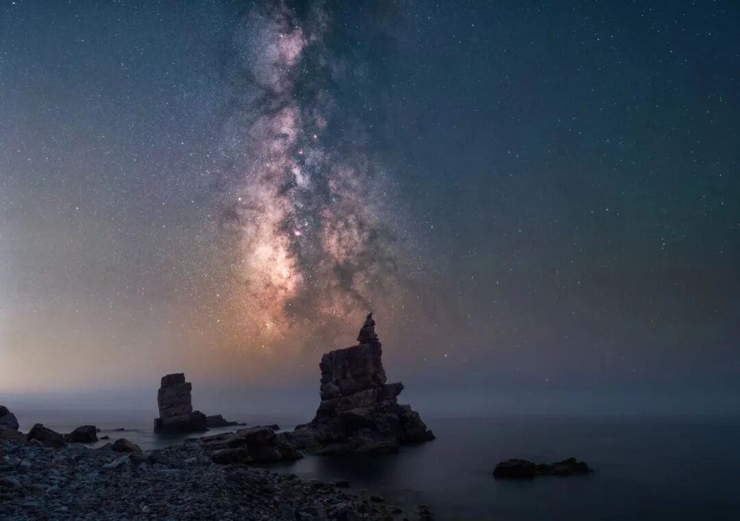 夏日银河如跳动的音符,繁星点点,静谧且感人。旅顺口的将军石在海浪声中静默,历史的印记深刻其上,显现坚定和毅力。尝试用镜头捕捉璀璨星光与永恒路标之间的对话,寻找天地间的和谐之美。