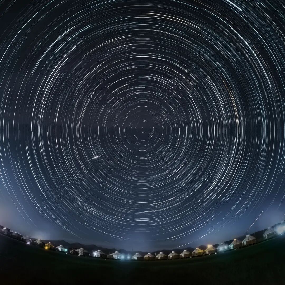 巴音布鲁克景区内,有一个“江格尔传奇”,其实是蒙古包围成一圈的营地,尽管光污染此起彼伏,无法掩盖漫天星辰的光芒,相机就架在蒙古包门前—这里是探索巴音布鲁克大草原梦想开始的地方……