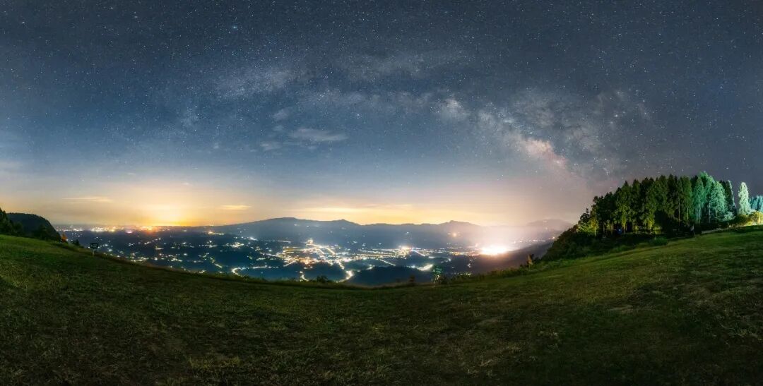 因为天气和其他原因许久没在家乡见到星空,前几天和朋友约着去小镇后面的山上看看日落,火烧云没等到,反而日落后迎来了一个光板天,于是决定等到晚上拍一下星空;天黑后前往提前踩好点的平台,刚到草坪上时我们都被眼前的景象所震撼,左边远处还可以看见洪雅县城的灯光,一路延伸至眼前,脚下是从洪雅到花溪和柳江镇的万家灯火,右边还能隐约看见峨眉金顶的灯光,头顶却是十分璀璨的漫天星辰,以及横跨整个洪雅县的银河,这就是我最喜欢的场景之一,脚下万家灯火,头顶星光璀璨,人与自然的和谐共生。